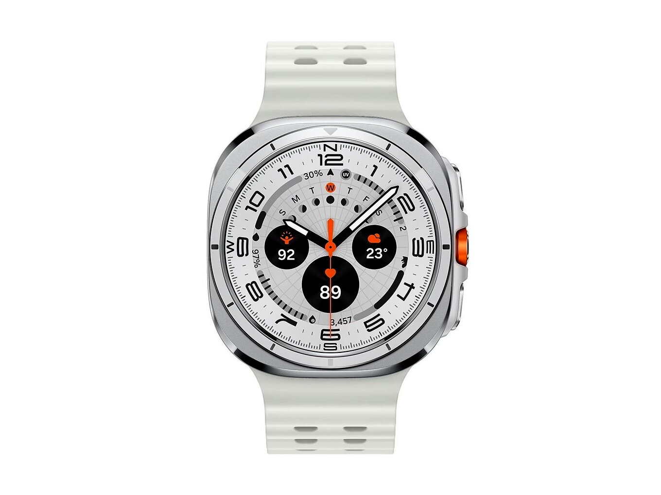 A titánból készült ház és az ezüst szín különlegesen elegáns hatást kelt, miközben a fehér szíj biztosítja a kényelmes viselést. A Watch Ultra nemcsak stílusos, de tartós is, és anyagaiból adódóan rendkívül ellenálló.