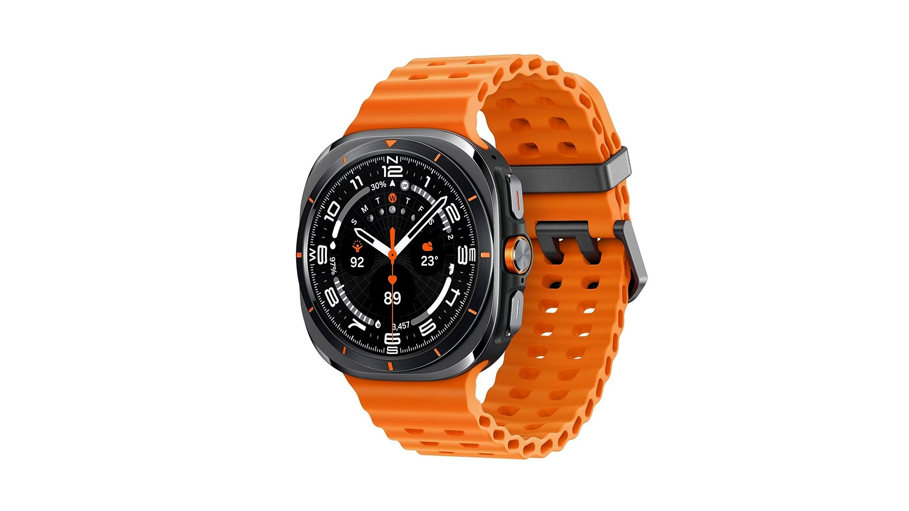 Tapasztalja meg az okosóra technológia új szintjét a Samsung Galaxy Watch Ultra segítségével. Az eszköz tökéletes társ a mindennapokban, sportolás közben és egészségügyi adataid nyomon követéséhez egyaránt. Robusztus titán háza és szürke színe stílust és tartósságot sugároz, míg a narancssárga szíj lendületet és fiatalos megjelenést kölcsönöz.