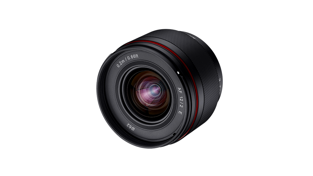 A Samyang, bejelentette a 12 mm-es F2 E-t, egy új autofókuszú nagylátószögű elsődleges objektívet a Sony APS-C tükör nélküli kamerarendszerek számára. A teljes képkockás fényképezőgép 18 mm-es objektívjéhez hasonló látószöget kínáló objektív 12 tagból áll, 10 csoportban, köztük három rendkívül alacsony szórású és két aszférikus. A minimális fókusztávolsága 19 cm-es és az elülső szűrő menete 62 mm. A Samyang nem árult el részleteket az objektív autofókusz rendszerével kapcsolatban, azon kívül, hogy azt állítja, hogy gyorsabb és halkabb, mint a korábbi verziók, köszönhetően az újonnan kifejlesztett léptetőmotornak az objektívben.