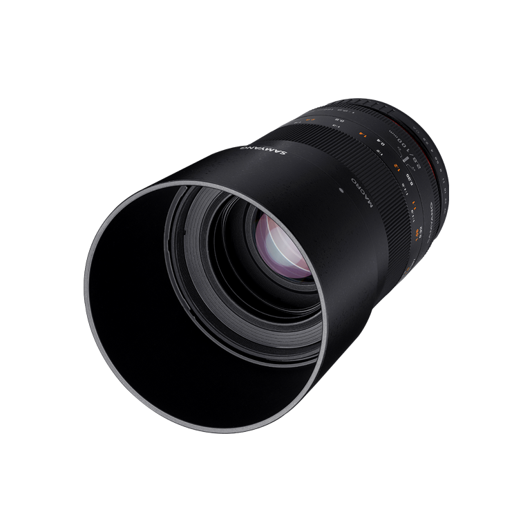 A Samyang Optics 100 mm F2.8 ED UMC MACRO egy makró telefotó kézi élességállítású objektív, amelyet teljes keretes szenzorméretekhez terveztek. A maximális közeli nagyítás 1:1. Ez az élénk színekkel és lágy kifókuszálással rendelkező makró objektív a legjobb objektív virágok és rovarok közeli felvételéhez. 100 mm-es teleobjektívként is használható tájképek és portrék készítéséhez.