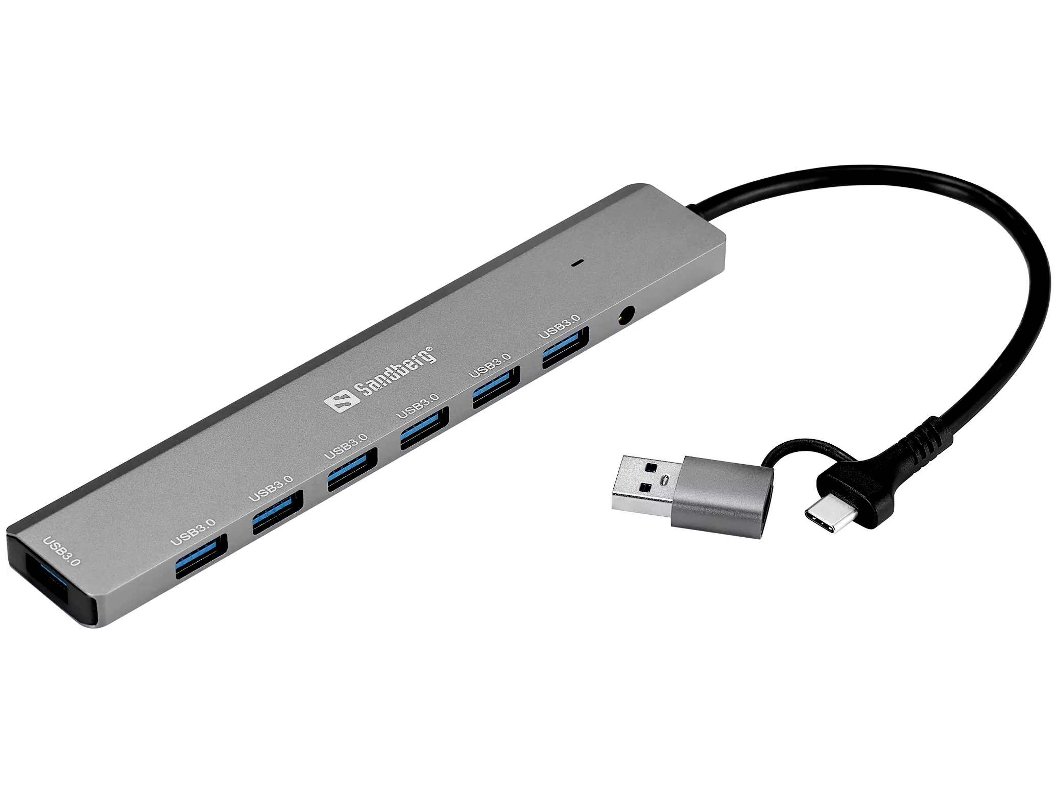 A Sandberg USB-C/A to 7 x USB 3.0 hub tökéletes megoldás, ha gyors, megbízható és sokoldalú bővítést keres eszközeihez. Ideális munkához, tanuláshoz vagy szórakozáshoz, hiszen egyszerre akár hét USB eszközt is csatlakoztathat egyetlen porthoz. Ne érezze korlátok között magát: növelje produktivitását és élvezze a technológia szabadságát ezzel a prémium minőségű USB hubbal!