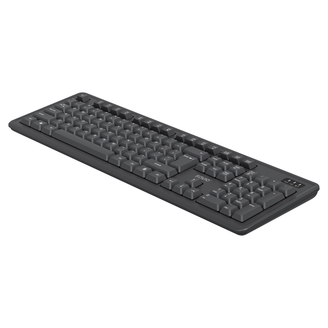 A Savio vezeték nélküli billentyűzet–egér szett ideális választás mindennapi irodai, otthoni és tanulási feladatokhoz. Kényelmes gépelést, stabil vezeték nélküli kapcsolatot és letisztult, professzionális megjelenést kínál, amely jól illeszkedik bármilyen asztali környezethez.