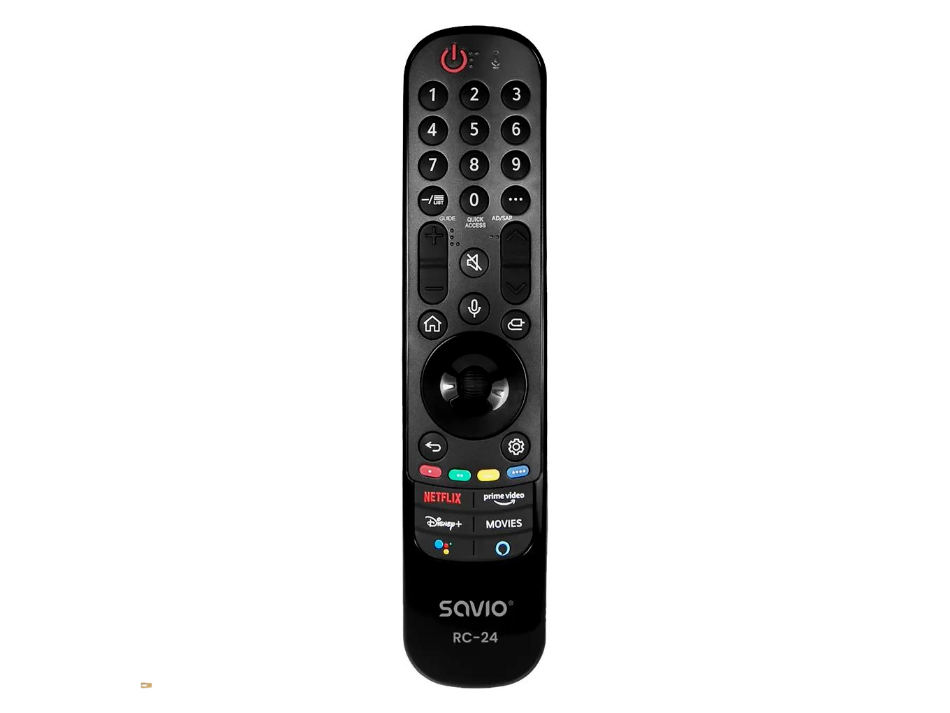 A Savio RC-24 LG smart univerzális távirányító ideális megoldás, ha elveszett, megsérült vagy már nem működik az eredeti LG TV távirányító. Funkcióiban az eredetihez igazodik, így kényelmesen, kompromisszumok nélkül vezérelheted LG okostelevíziódat – bonyolult beállítás és programozás nélkül.