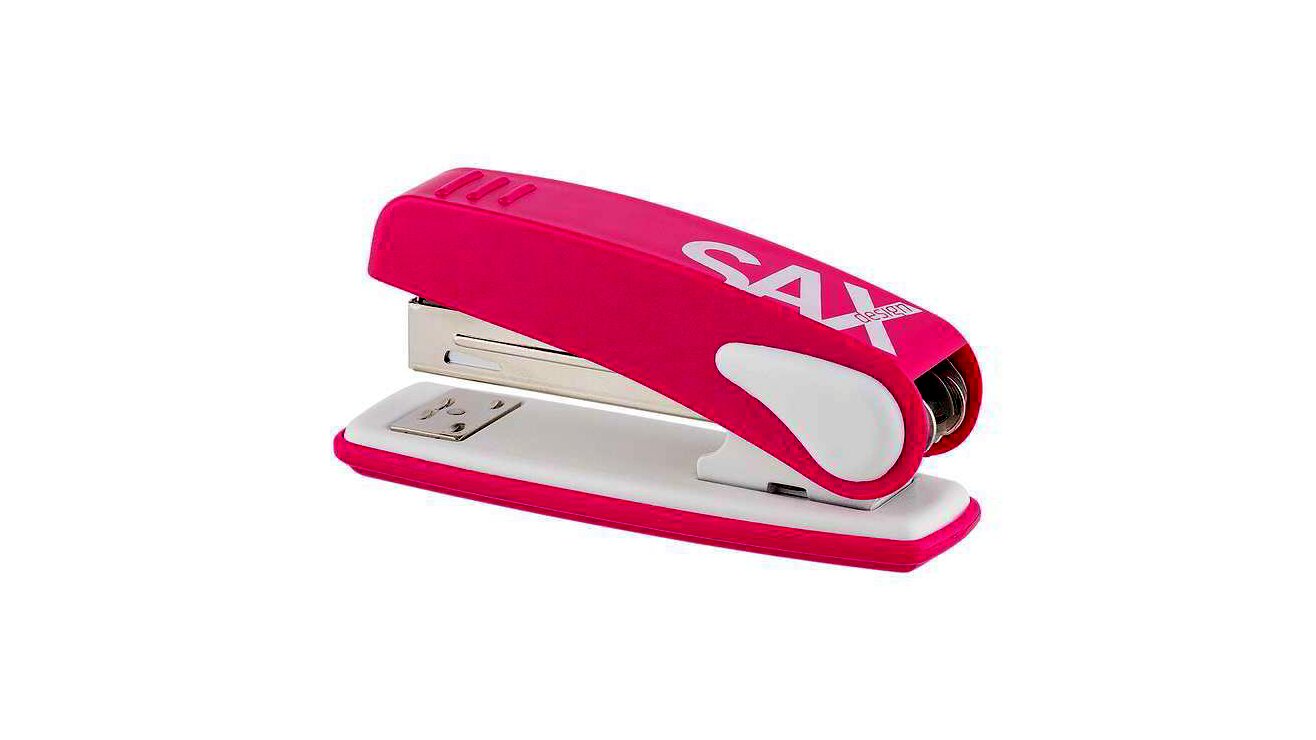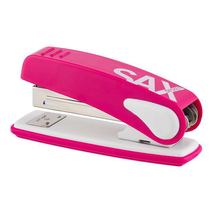 Tűzőgép ergonomikus nyomófelülettel. Keresse a színben hozzáillő SAX Design Lyukasztógépeket is!