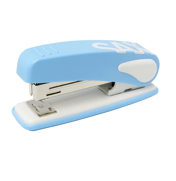 Tűzőgép ergonomikus nyomófelülettel. Keresse a színben hozzáillő SAX Design Lyukasztógépeket is!