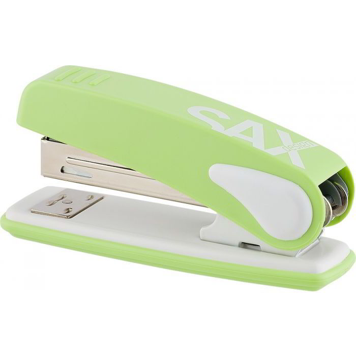 Tűzőgép ergonomikus nyomófelülettel. Keresse a színben hozzáillő SAX Design Lyukasztógépeket is!