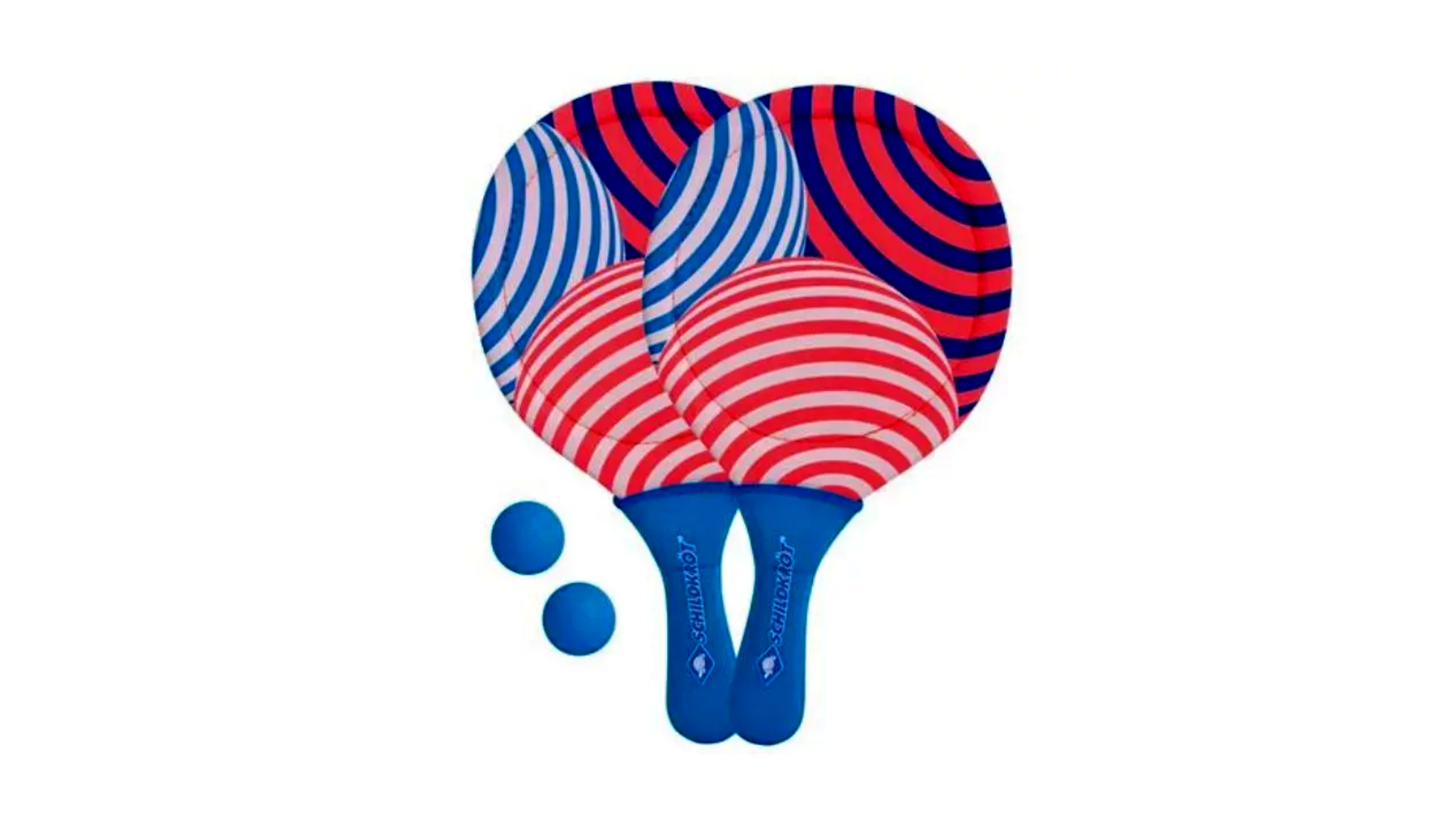 A Schildkröt Neoprén strandtenisz szettje tökéletes választás a Balaton-parton vagy a kertben történő aktív kikapcsolódáshoz. A készlet 2 darab színes, rugalmas neoprénnel bevont ütőt, valamint 2 darab labdát tartalmaz. A készlet praktikus, zsinórral zárható hálós táskában érkezik, így tárolása és hordozása egyszerű. A vízálló anyagnak köszönhetően a sportolni vágyók nyugodtan használhatják a vízparton is a játékot.