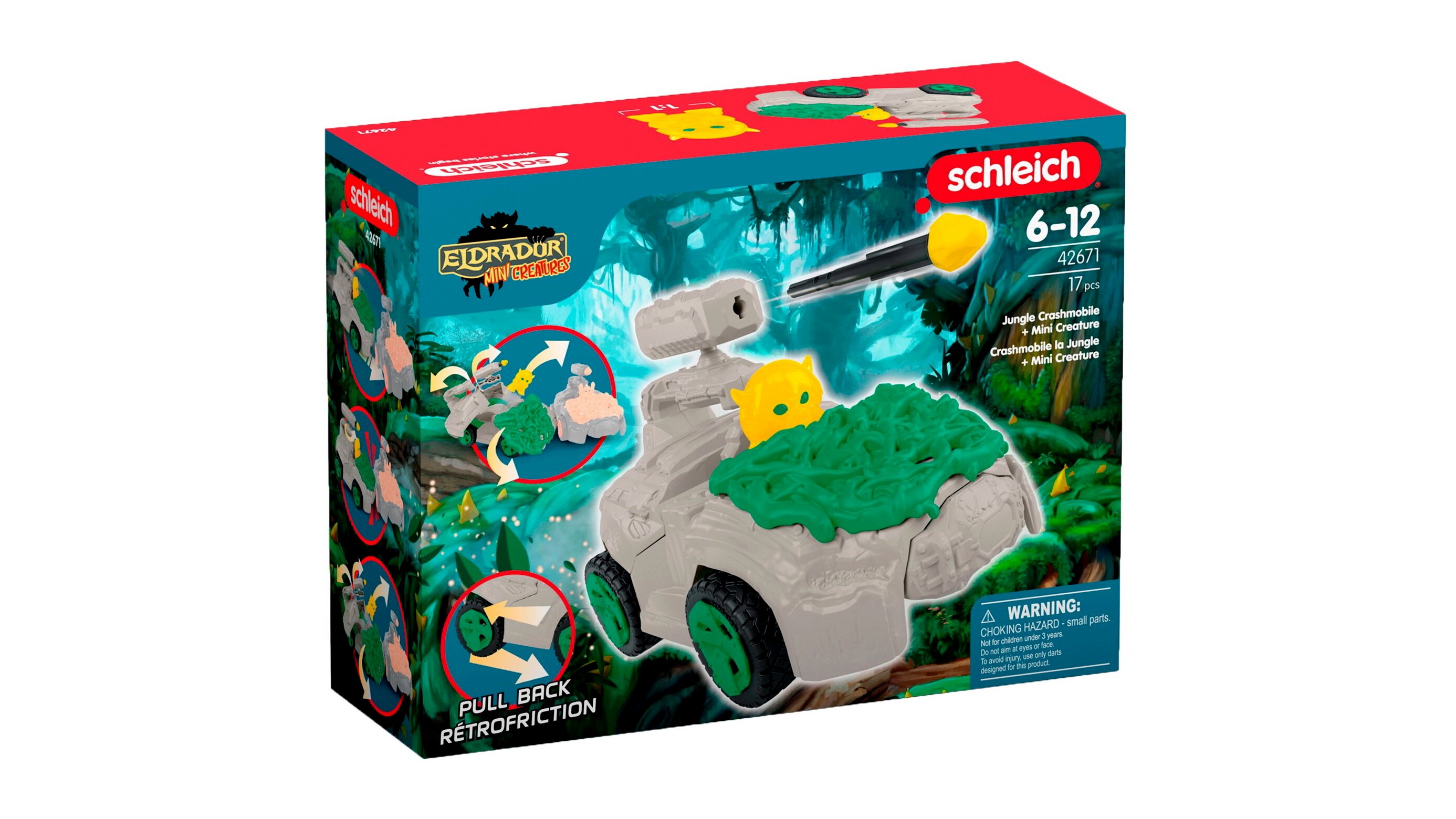 A Schleich Eldrador lények Dzsungeljáró ütközőmobil új szintre emeli a játékélményt. Az izgalmas ütközőmobil visszahúzós motorral van ellátva, hogy a miniatűr lények támadási tervei még hatékonyabbak legyenek.