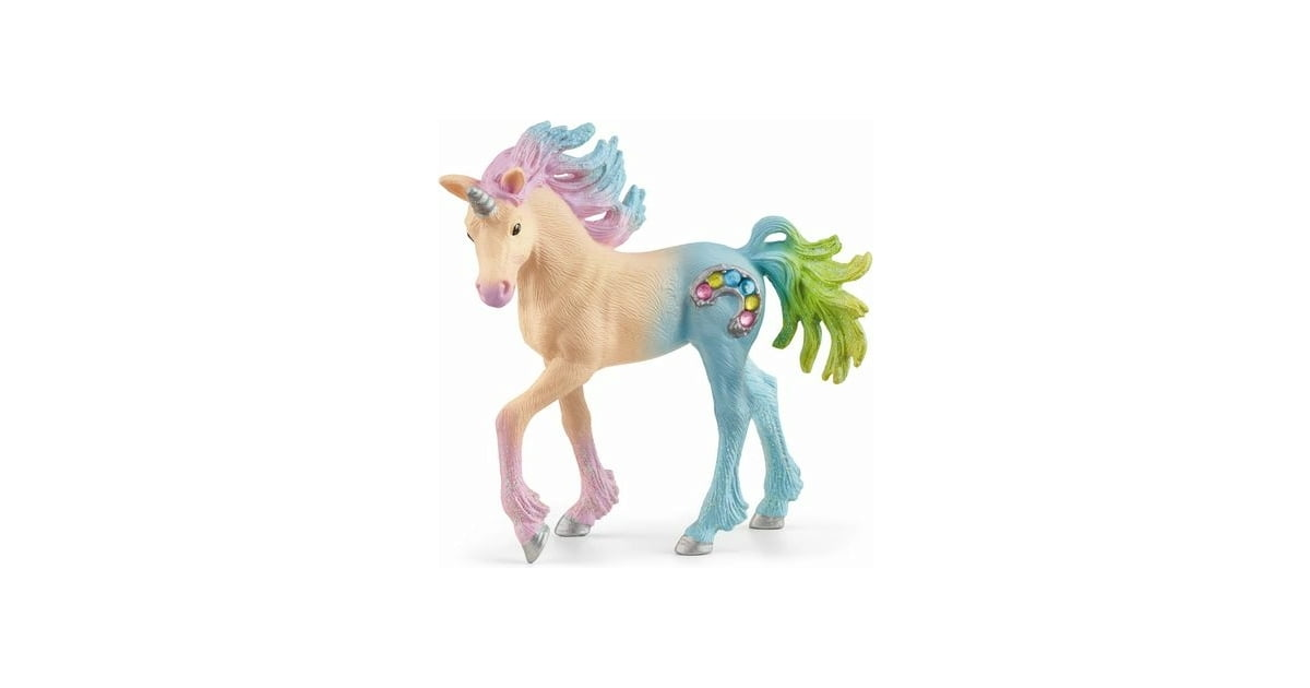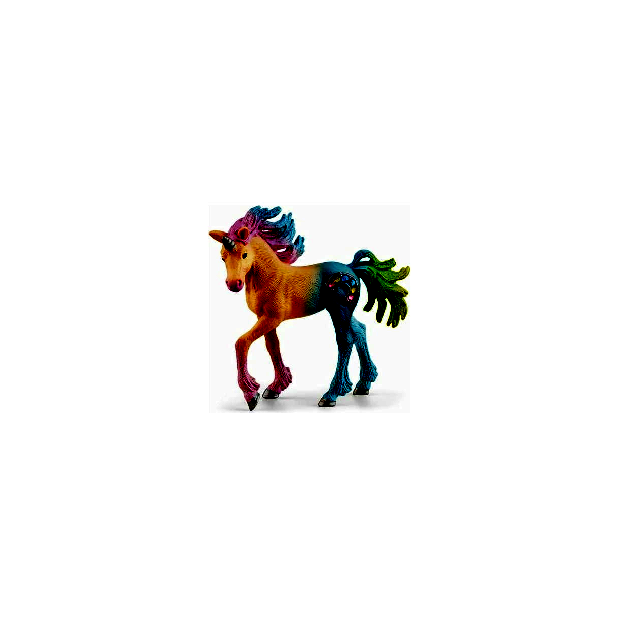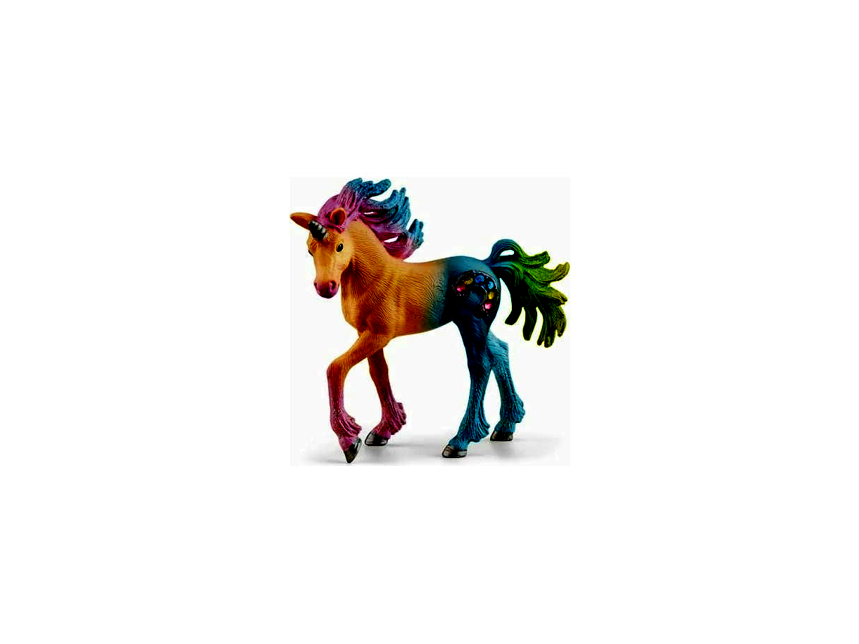 A kézzel festett, részletgazdag Schleich unikornis csikó figura varázslatossá teszi a játékot. Színpompás szőre bájos megjelenést kölcsönöz ennek az egyszarvúnak. Ha a gyerekek a szivárvány végét keresik, a csikó biztosan a segítségükre lesz: a legszebb utakat is ismeri, színes farkával és sörényével pedig jeleket varázsol a levegőbe és eligazít mindenkit. Imád sétálni és mandalákat festeni. Sőt, azt is tudja, hol lehet aranyat találni a szivárvány végénél!