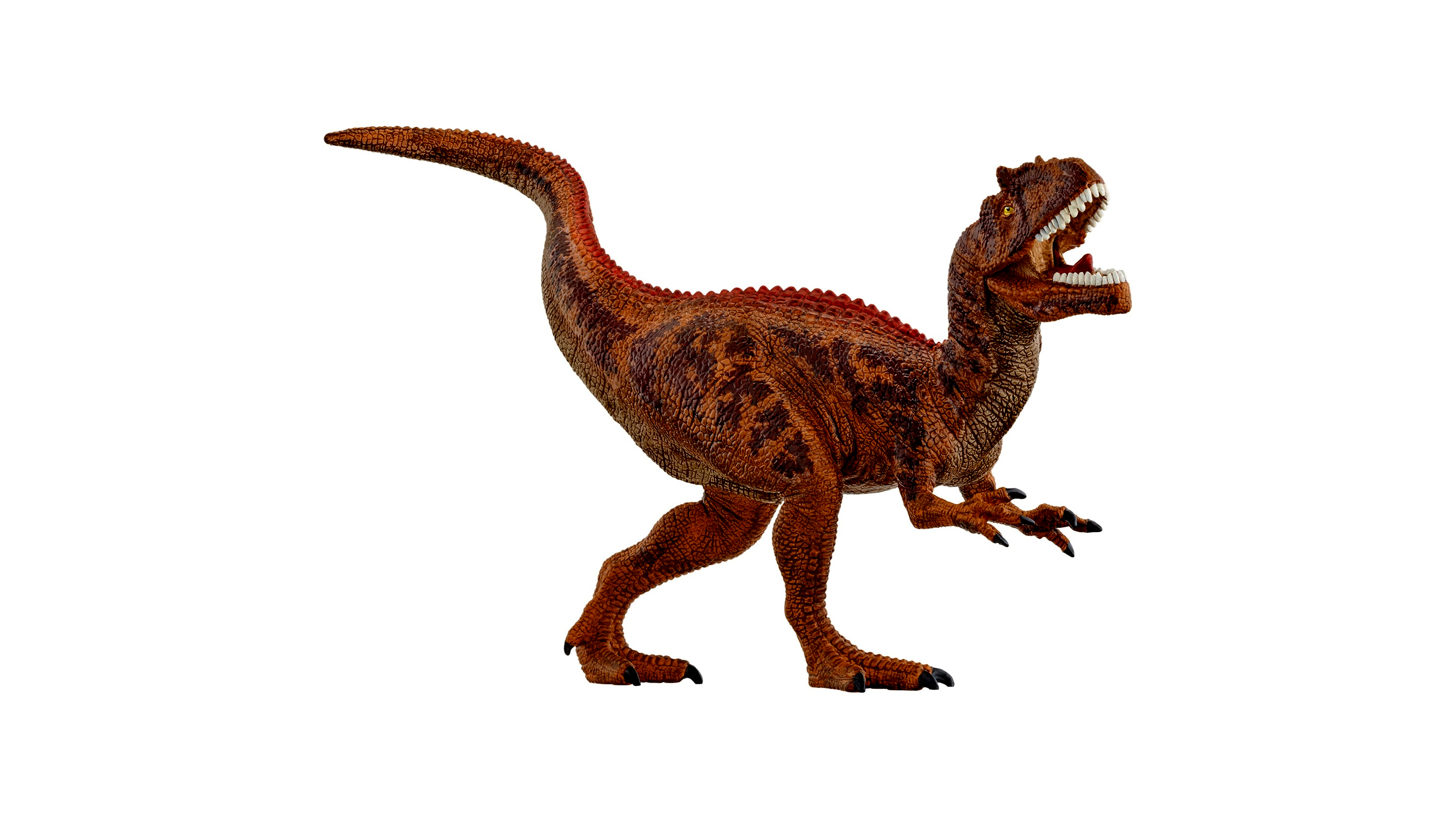 Ez a húsevő dinoszaurusz korának legveszélyesebb ragadozója volt: nehéz lépések már messziről jelezték az Allosaurus jelenlétét. Ez az óriás magasan áll, két lábon sétál a dzsungelben, zsákmányt keresve. Annak ellenére, hogy hatalmas, annyira jól álcázza a mintás gyíkbőrt, hogy könnyen beleolvad a környezetébe. Sárga szemekkel szemléli a területet. Remélhetőleg nem nyitja ki az állkapcsát, és nem fedi ki éles fogait. Ennek a Schleich Dinosaurs sorozatból származó figurának mozgatható állkapcsa van.