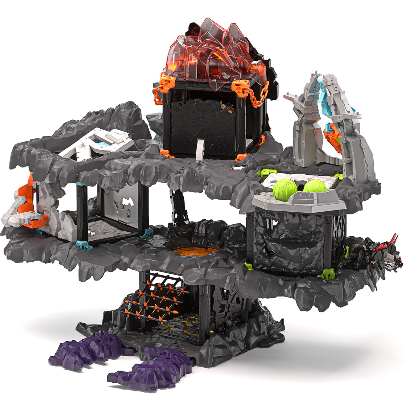A fenyegető sárkányfejjel díszített sziklaerőd már messziről tekintélyt parancsol. A hatalmas „száj” nemcsak látványelem, hanem kulcsfontosságú játékelem is: amikor kinyílik, kiderül, hogy egy lőfegyver rejtőzik benne, amellyel a betolakodókat tarthatják sakkban. A Mesterbarlang több szinten, számos zuggal, rejtekhellyel és támadási ponttal várja a kis stratégákat.