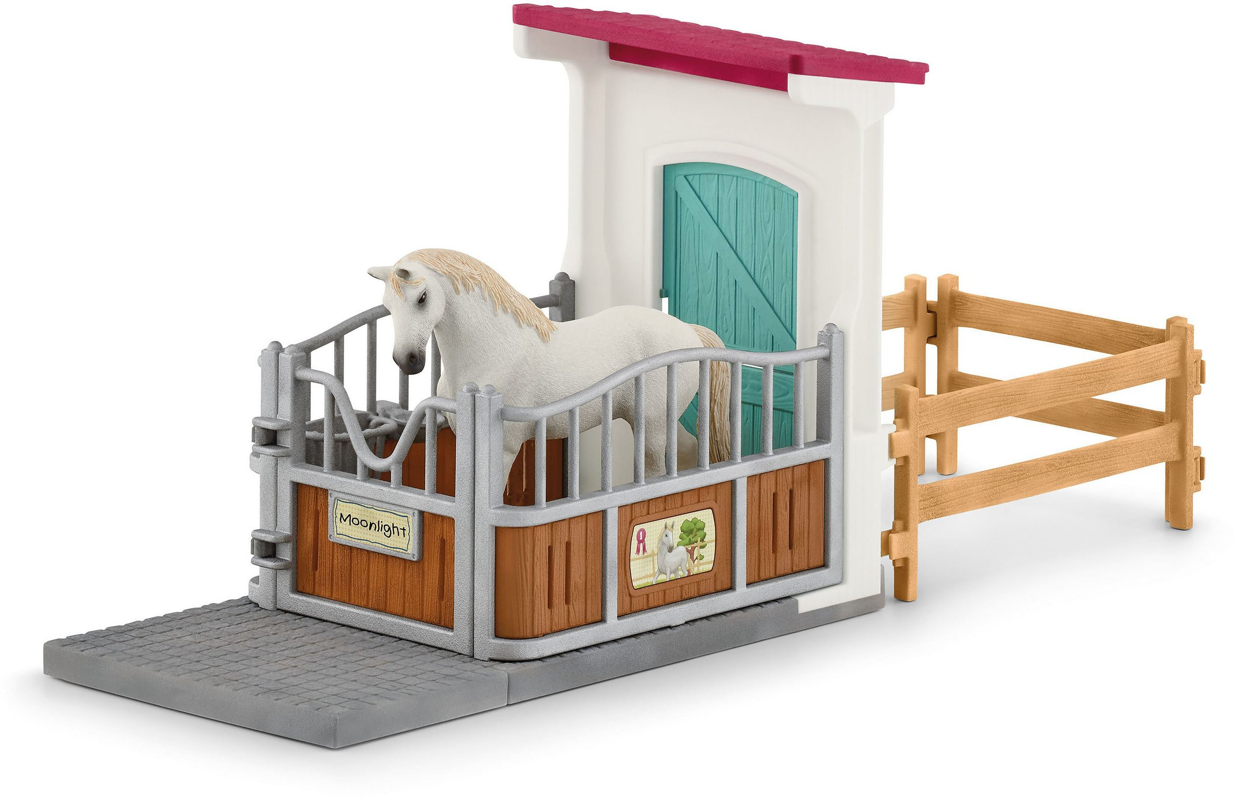 Ennyi lovaglás és ugrálás után minden ló várja a pihenést. Ezt a legjobb a hangulatos lóbokszban megtenni. Itt tényleg minden megvan, amire egy ló szíve vágyik: a fogasnál lehet enni, az itató pedig a legnagyobb ló szomját is oltja. A lóboksz modulárisan bővíthető és illeszkedik a Horse Club sorozat lóistállójához.