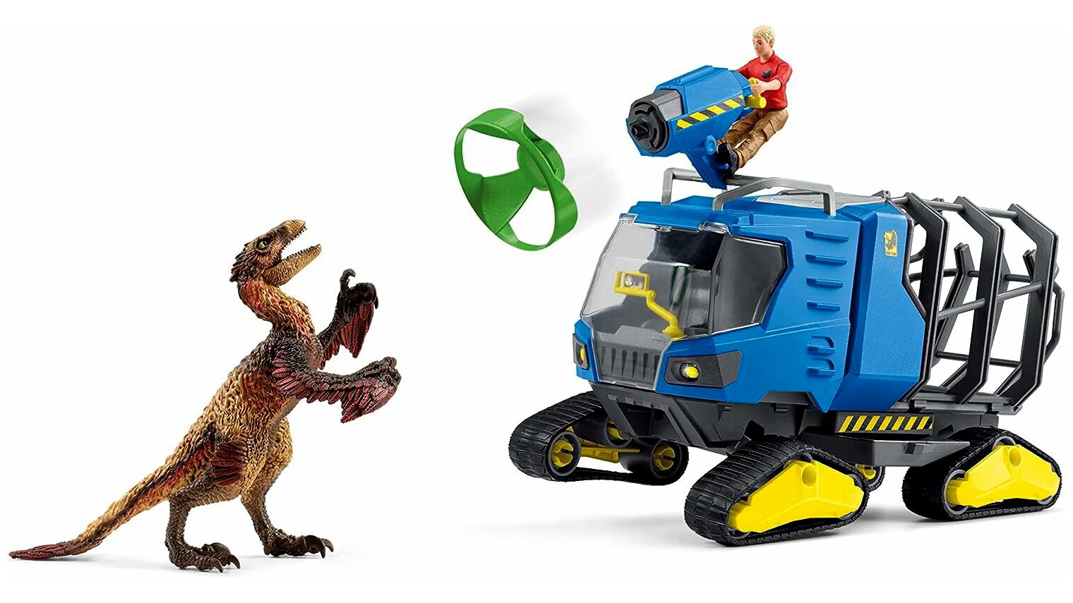 Flynn kint van a dzsungelben a lánctalpas járművével, dinoszauruszok után kutatva. Amikor megemeli a vezetőfülkét, teljes rálátása van a terepre, és mérföldeken keresztül észrevehet minden őskori óriást.
