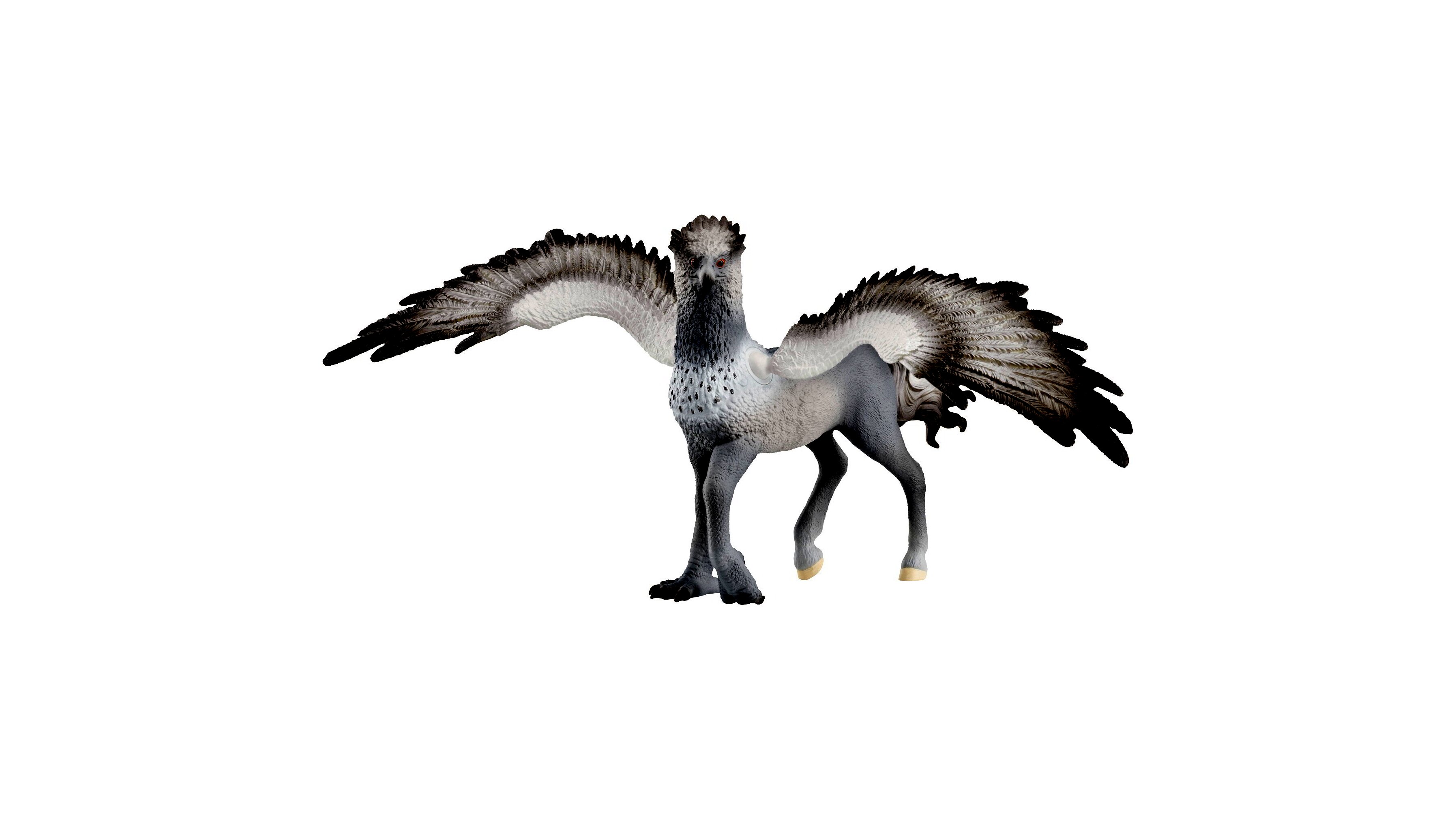 Buckbeak Hagrid szeretett hippogriffje. Lenyűgözi erős kendőivel és hegyes karmaival. A hippogriff rendkívül büszke teremtmény. Ha egy boszorkány vagy varázsló közeledni akar hozzá, először meg kell hajolnia, hogy jó szándékot mutasson. Ez a besurranó figura a Wizarding World sorozat része, amely Harry Potter világának karaktereit tartalmazza. Mozgatható szárnyai vannak.