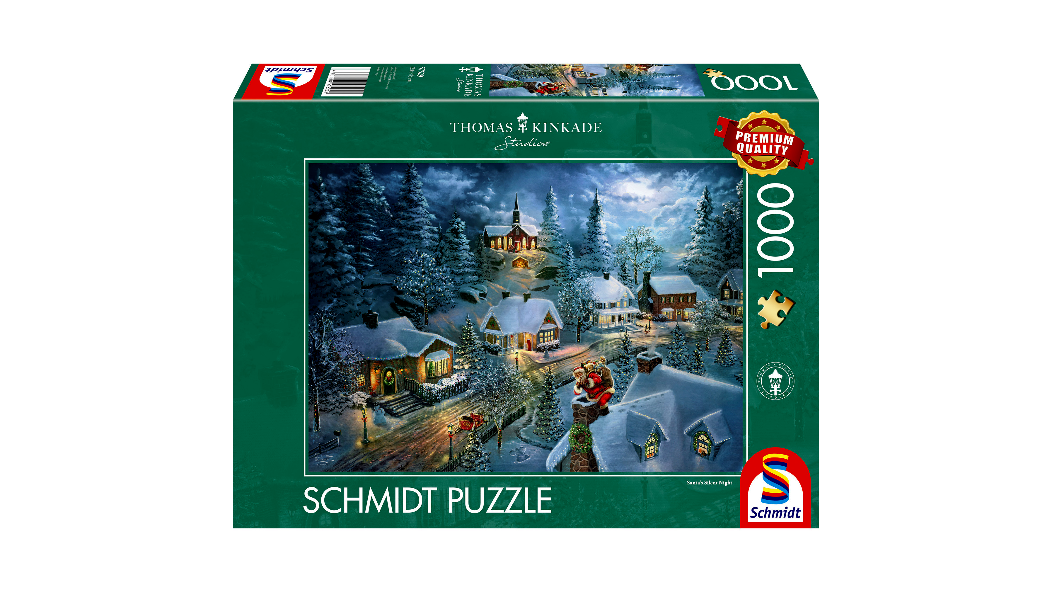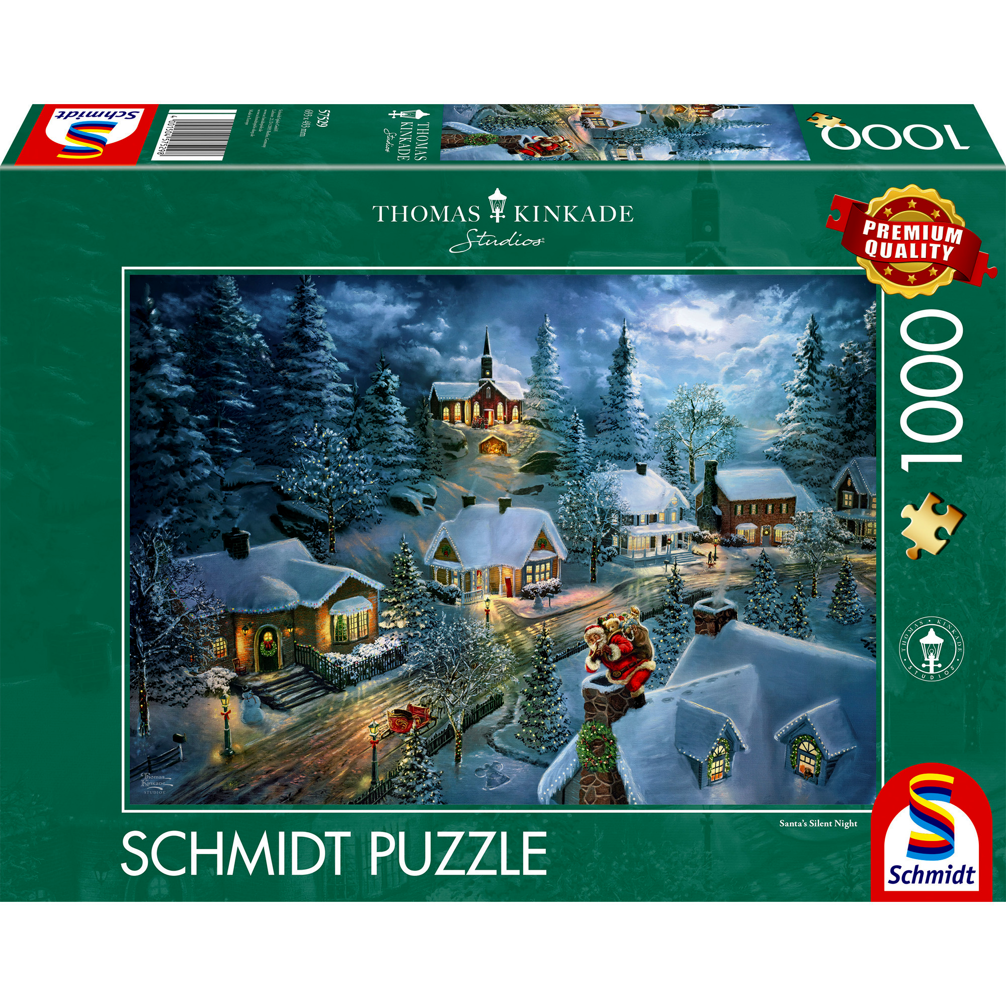 A Thomas Kinkade Studios varázslatos ünnepi festményével díszített, 1000 darabos kirakó igazi élményt nyújt mindenkinek, aki szereti a hangulatos, részletgazdag képeket és a minőségi puzzle-öket. A kép egy meghitt, havas karácsonyi éjszakát ábrázol, ahol a Mikulás csendben készülődik, miközben a fények, a hó és az épületek meleg ragyogása különleges atmoszférát teremt.