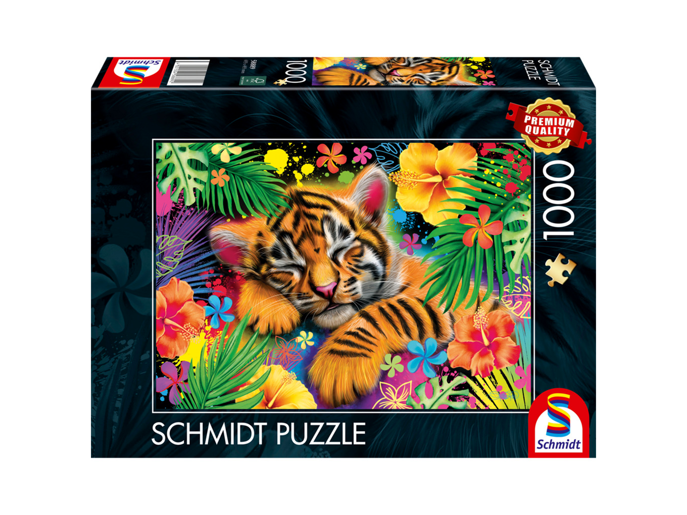 Az idilli jelenet egy fiatal tigrist ábrázol, ahogy virágzó növények között, békésen pihen. A vibráló színek, az aprólékosan kidolgozott részletek és a kontrasztok nemcsak esztétikus látványt nyújtanak, hanem logikus, élvezetes kirakási folyamatot is biztosítanak. A kép ideális nehézségi szintet képvisel: elég kihívást nyújt ahhoz, hogy ne legyen unalmas, de jól követhető szín- és mintafelosztásainak köszönhetően nem válik frusztrálóvá.
