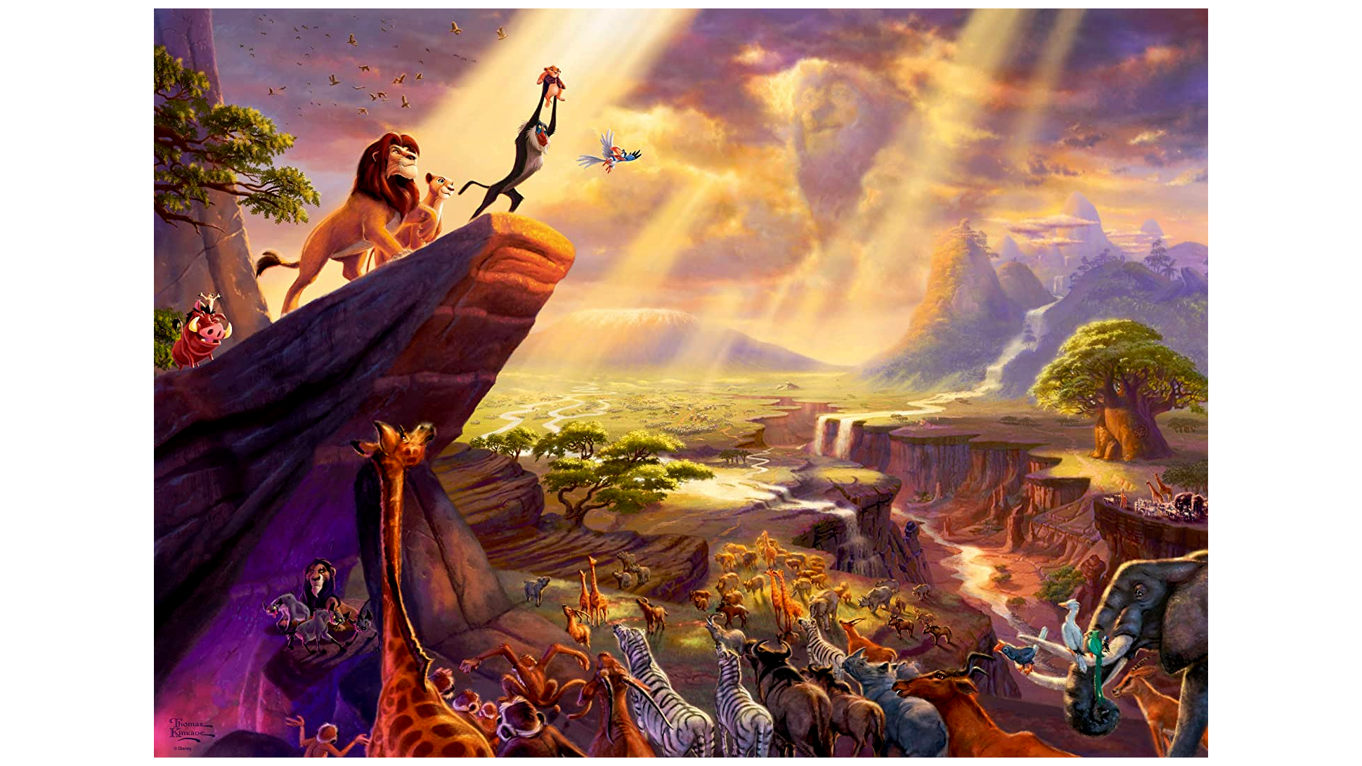 Thomas Kinkade (1958 - 2012) amerikai festő motívumaival egyenesen Walt Disney varázslatos mesevilágába juthatsz el. Thomas Kinkade fantasztikus világairól ismert. Mesterien értette, hogyan ragadja meg képeivel a Disney varázsát. A kirakóssal darabról darabra egyre mélyebbre merülsz a Disney elbűvölő olyan klasszikusaiba mint a "Hamupipőke", "Csipkerózsika", "Dzsungelkönyve" és "Szépség és a Szörnyeteg" és sok szeretett karakterrel találkozhatsz. Rengeteg felfedeznivaló van a Kinkade képeken. A részletekre való figyelés óriási. Nem csak látványában gyönyörködhetsz, hanem több órányi fejtörő szórakozást is biztosítanak kirakósaink.