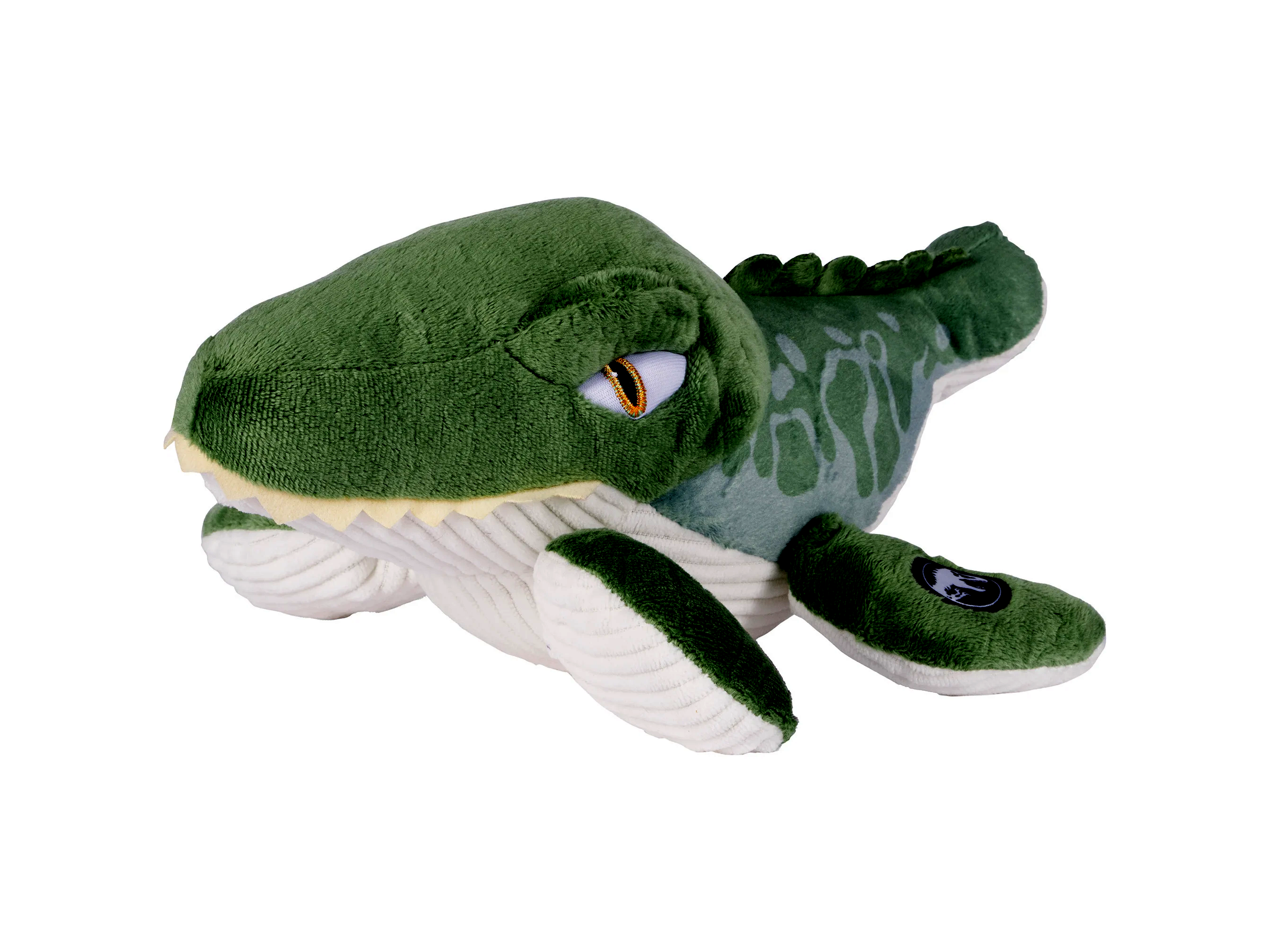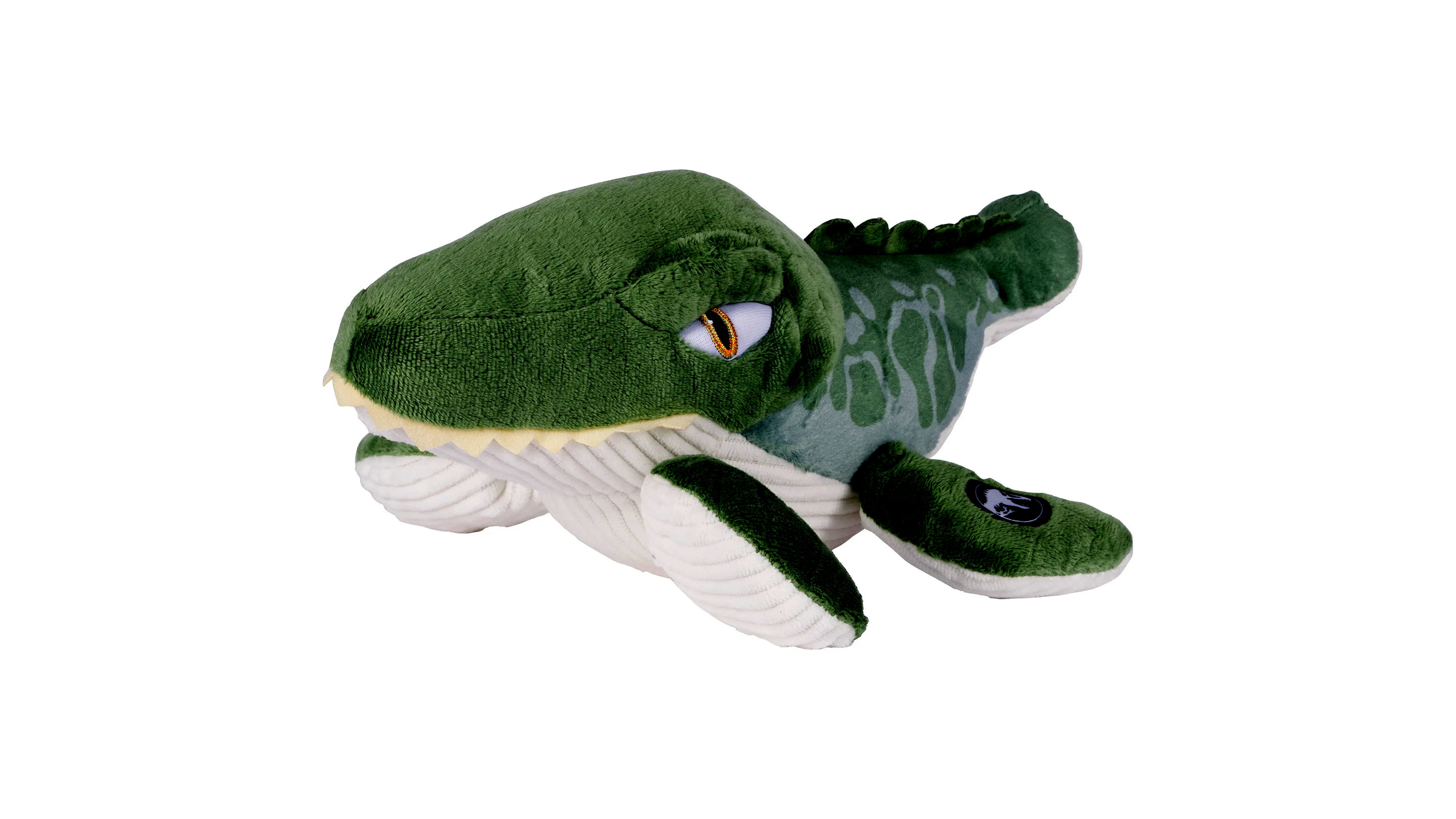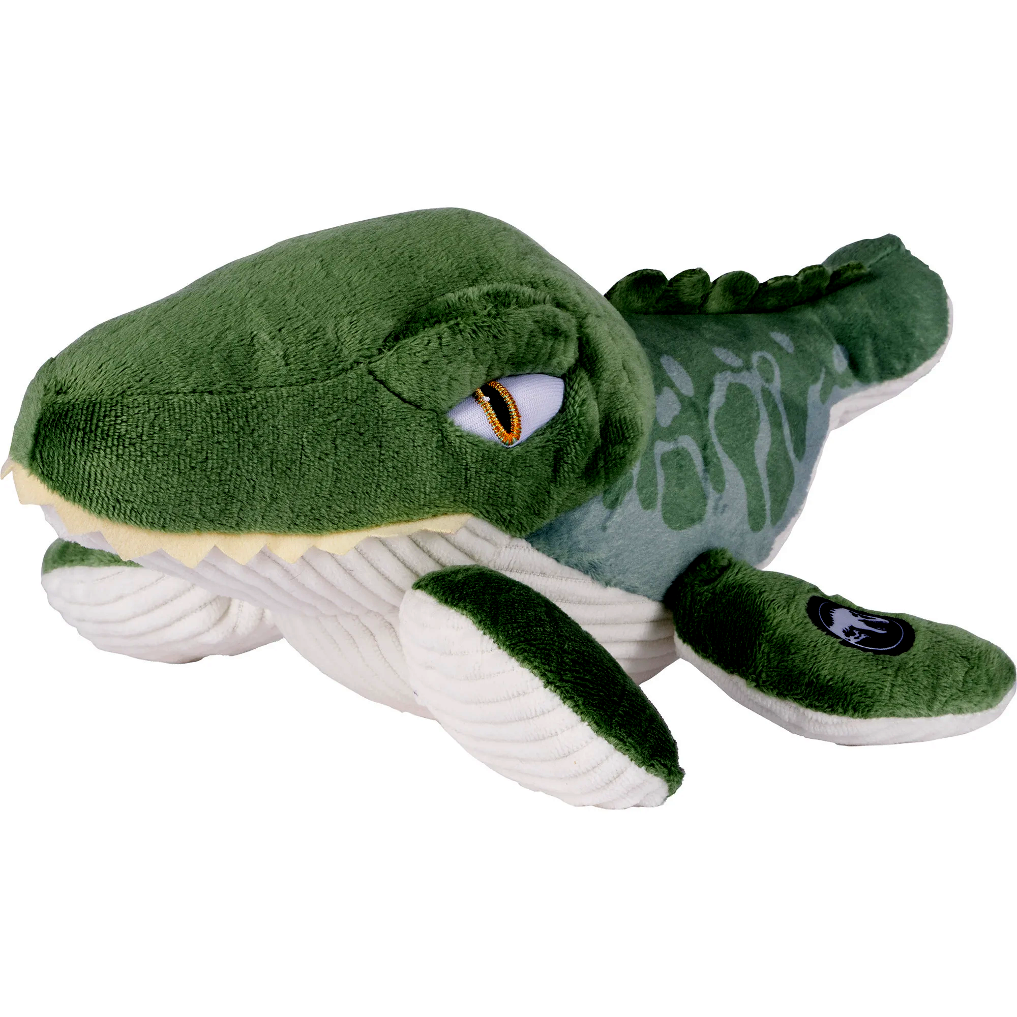 A Mosasaurus egy hatalmas, tengeri életmódot folytató őshüllő volt, amely nagyjából 82-66 millió évvel ezelőtt élt. Az állat hossza elérheti a 15 métert is, és a mai krokodilokhoz hasonló testfelépítéssel rendelkezett. Azonban a Schmidt Spiele plüss Mosasaurus figura esetében garantáltan csak a bájos, ölelgethető oldalával találkozhatunk! Ez a figura nem csak a Jurassic World rajongók számára nyújt élményt, hanem minden gyerek imádni fogja közelségét és puha anyagát.