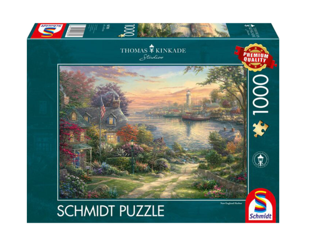 Ez a kirakó egy Thomas Kinkade Studios-illusztrációt ábrázol, egy hangulatos új-angliai kikötőt, lágy fényekkel, romantikus kikötői házakkal és nyugodt tengerparti atmoszférával. Kinkade világszerte ismert a „fény festőjeként”, képei a melegség, a nyugalom és az otthonosság érzését közvetítik – pontosan ez az élmény köszön vissza a kirakózás közben is.