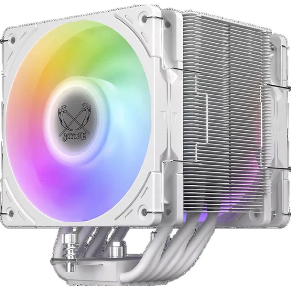 A Scythe legújabb, fehér színű, ARGB-s univerzális processzorhűtője azoknak készült, akik egyszerre igénylik a kiemelkedő hűtési teljesítményt, a halk működést és a látványos megjelenést. A masszív, egytorony kialakítású hűtőblokk és a két nagy teljesítményű, címezhető RGB ventilátor gondoskodnak róla, hogy a modern, nagy fogyasztású processzorok is stabil hőmérsékleten maradjanak intenzív terhelés mellett is.