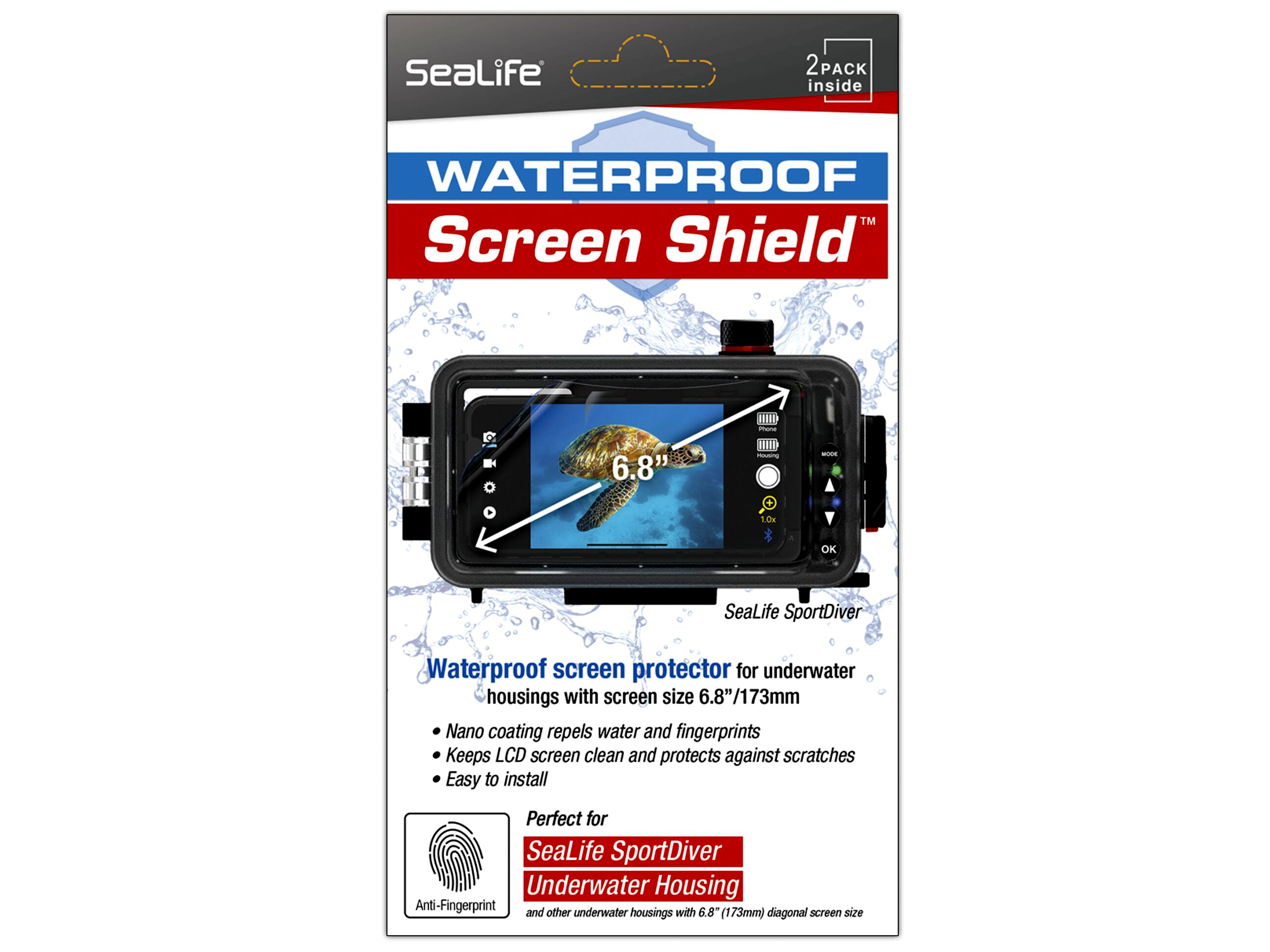A SeaLife SportDiver Screen Shield vízálló védelem kompakt fényképezőgépekhez és házakhoz, maximum 6,8"/173 mm-es képernyőátlóval.