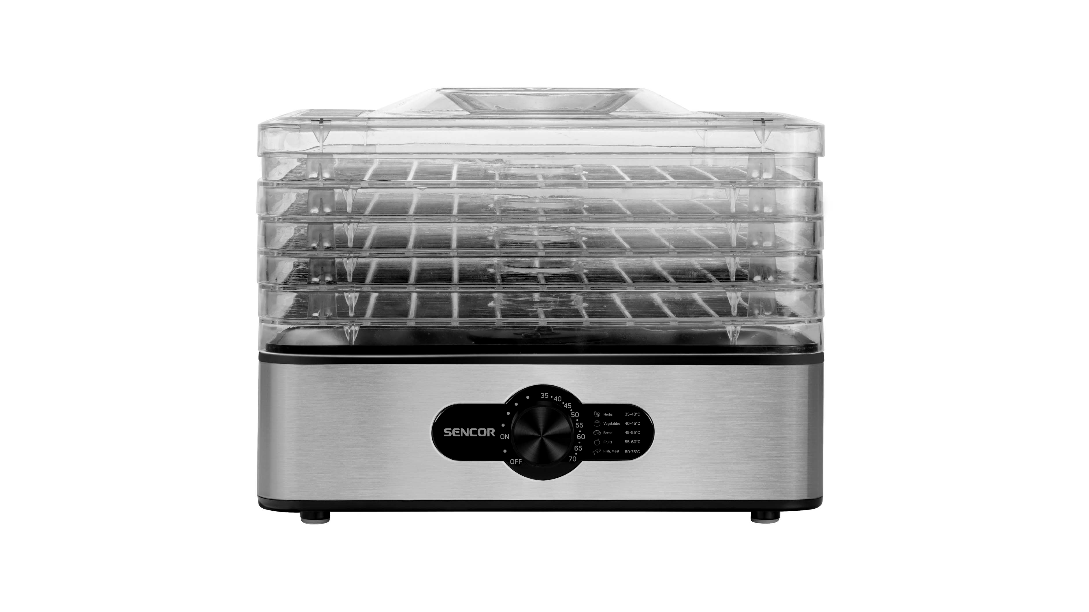 A készülék közepén van egy beépített ventilátor, amely forró levegőt generál fel és oldal irányba, így minden összetevő egyenletesen tud kiszáradni. Ez egy nagyon egyszerű folyamat, amely kevés időt vesz igénybe. A csomagban 5 szárítószitát talál, amelyek speciális rácsszerkezetűek és 29 x 20 cm méretűek. A szita a kiválasztott összetevőktől függően akár 16 vagy 29 mm szárítási magasságra is állítható.