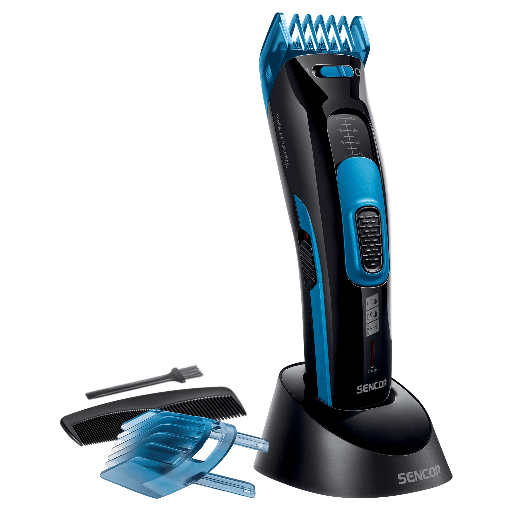 - Mellékelt tartozékok: praktikus tartó, töltő és tápellátó adapter, 2 fésűs feltét, tisztító kefe, késkenő olaj