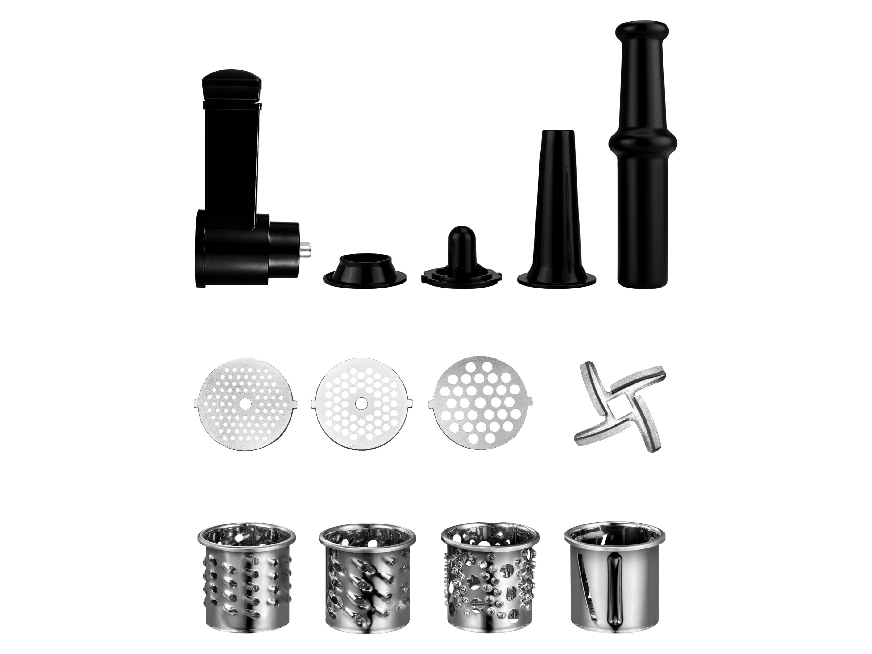 - 4 különböző típusú reszelő, szeletelő feltét, Vékony szeletelő /durva reszelő-daráló / finom reszelő-daráló / keménysajt és diódaráló