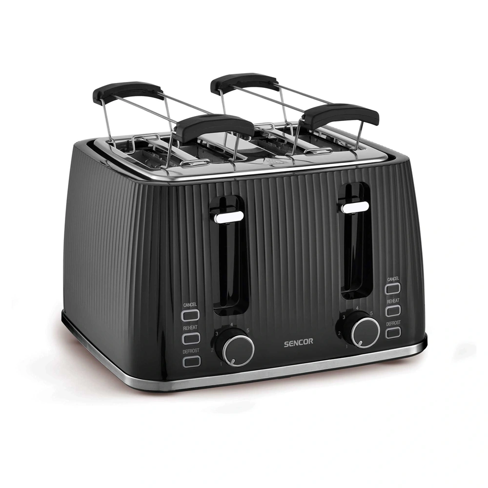 A modern konyhák elengedhetetlen darabja ez a nagy kapacitású, mégis könnyen kezelhető 4 szeletes kenyérpirító, amely ideális választás családoknak, nagyétkűeknek, vagy azoknak, akik szeretik, ha a reggeli pikk-pakk elkészül. Letisztult fekete kialakítása elegánsan illeszkedik szinte bármilyen konyhai környezetbe, miközben praktikus funkcióival a mindennapi használatot teszi kényelmessé.