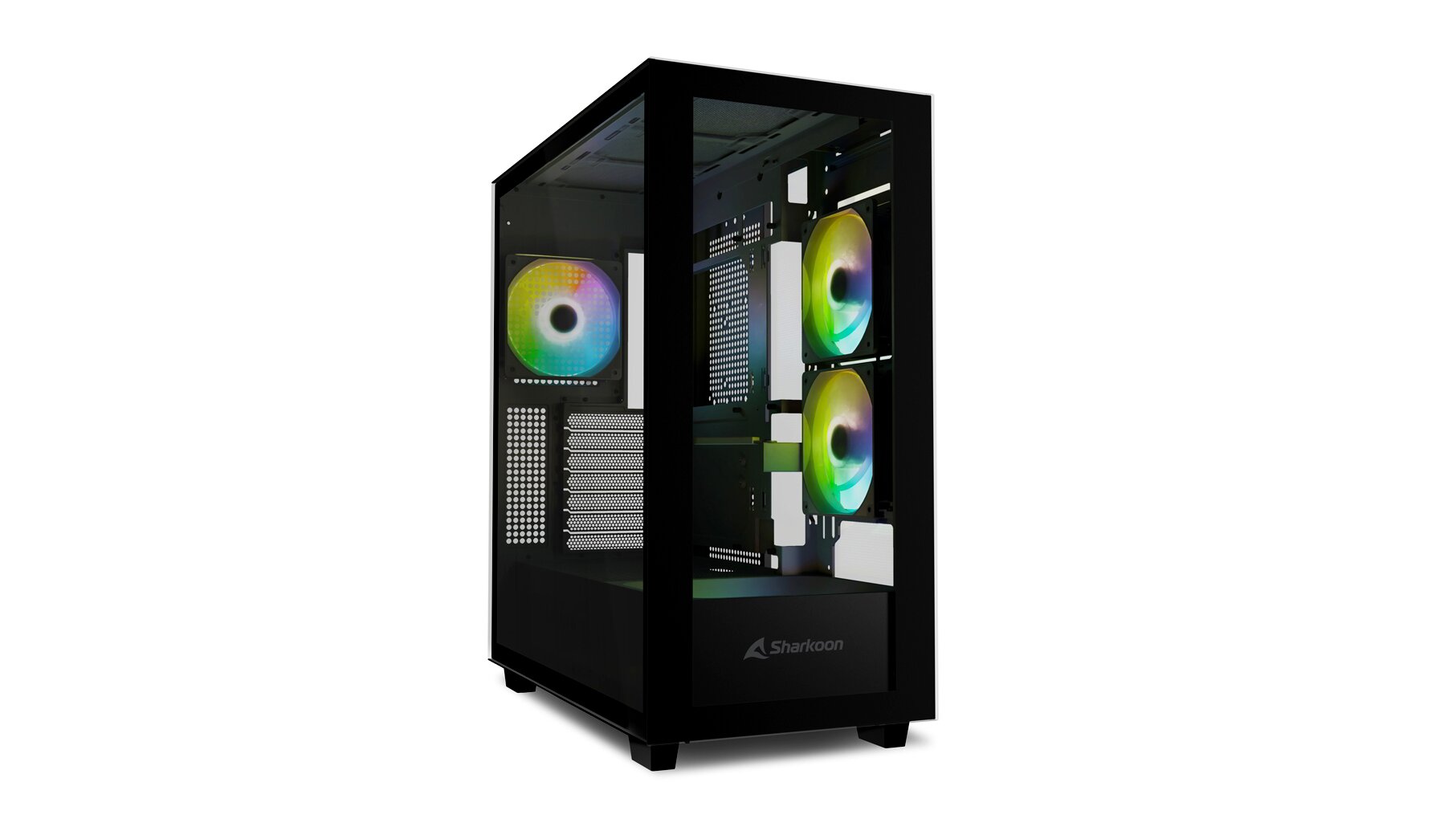 Az edzett üveg előlappal és oldalpanellel a Rebel C60 RGB a belső hardverre helyezi a reflektorfényt. A stratégiai pozíciókban elhelyezett négy RGB ventilátor (az alaplap, a RAM, a hűtés és a grafikus kártya körül) gondoskodik a hatékony hűtésről, a ház aljából pumpálva a levegőt a belsejébe. Ez az ATX tok szerelőkerettel és rögzítőkonzollal érkezik a HDD, SSD és egyéb ventilátorok egyszerű felszereléséhez. Ezenkívül a modern I/O portok széles körű csatlakozást garantálnak.