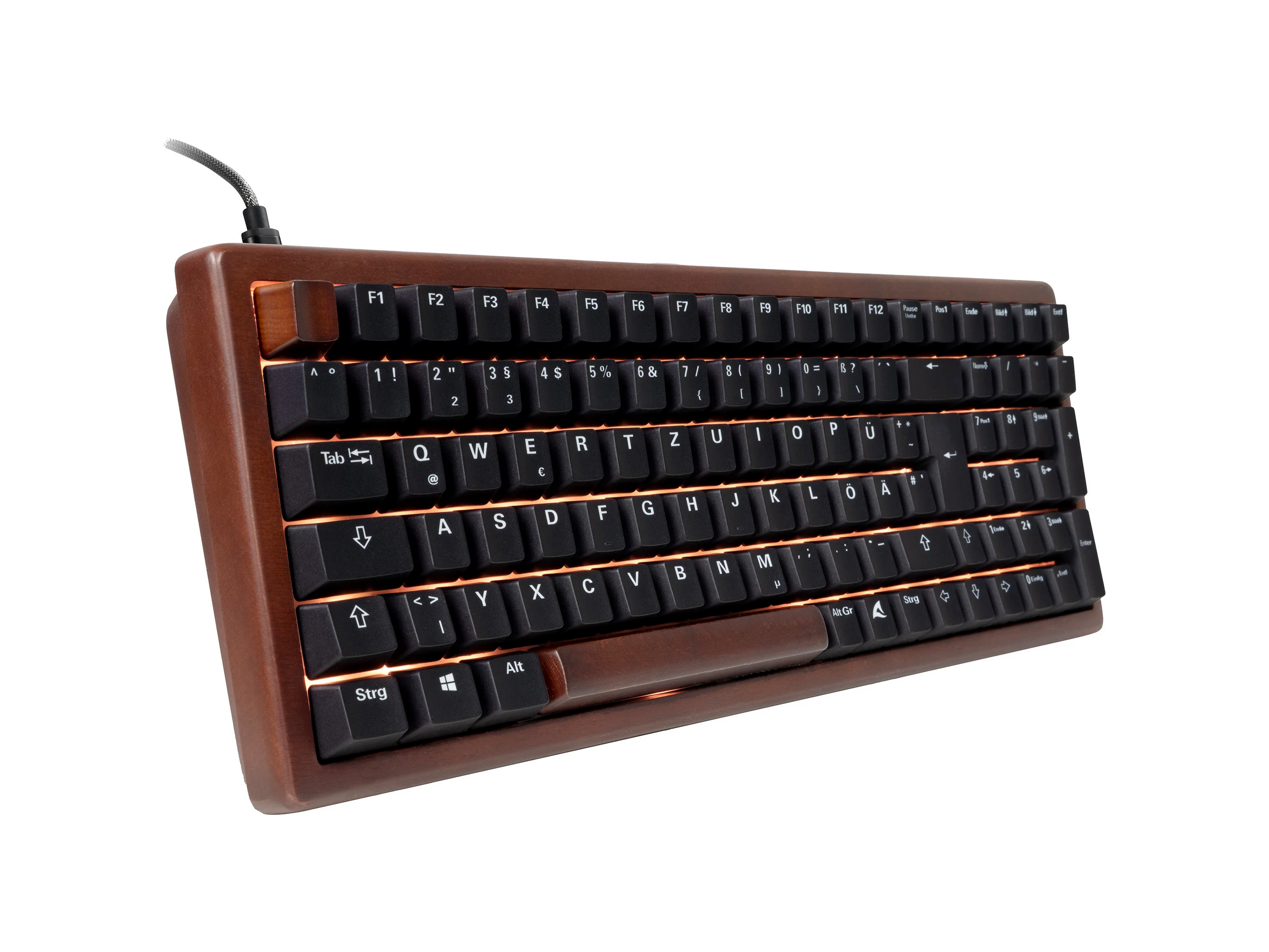 A Sharkoon SGK50 S2 Wood PBT mechanikus billentyűzet lenyűgöző optikával és prémium minőségű kivitelezéssel vonzza a tekintetet. A természetes fából készült burkolat és az RGB világítás modern dizájnnal ötvözve egyedi megjelenést biztosít.