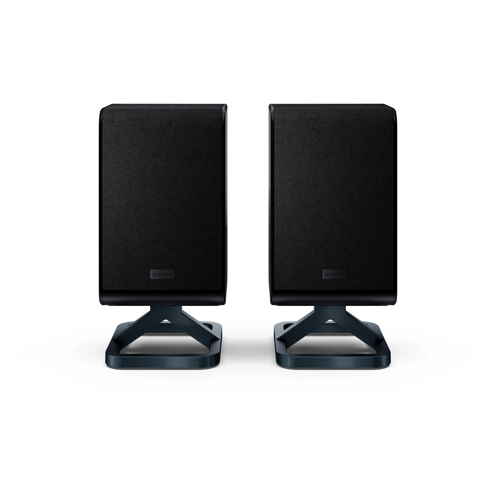 A fekete szín és az elegáns kialakítás minden enteriőrbe illeszkedik, látványos kiegészítővé téve a hangszórókat. A kompakt méret ellenére a hangminőség nem szenved csorbát.