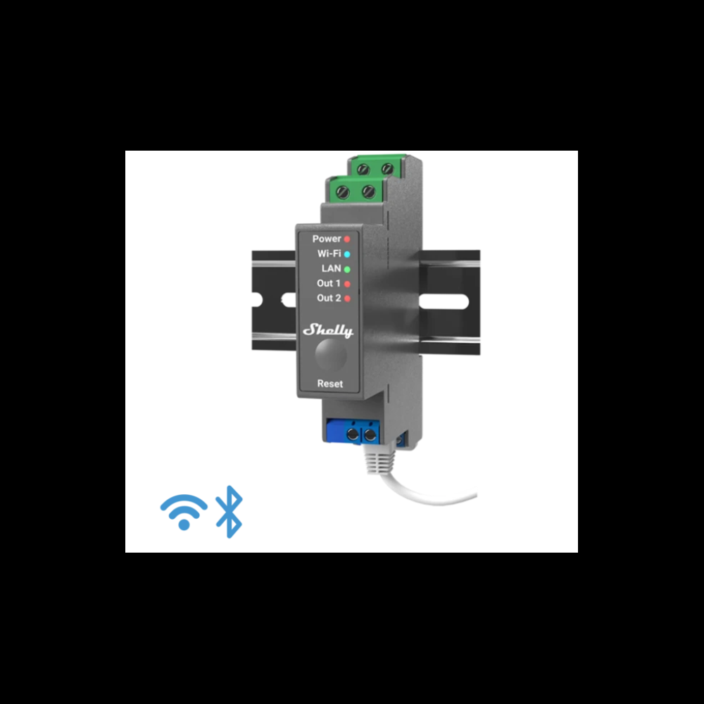 A Shelly professzionális 2 áramkörös reléje Wi-Fi-vel, vezetékes hálózattal (LAN), és and Bluetooth kapcsolattal is képes kommunikálni, és mind lakások otthonautomatizálási, mind komolyabb közületi épületek (áruházak, társasházak, üzletek stb.) professzionális automatizálására alkalmas megoldás. A PRO termékvonalat a Shelly elősorban újonnal épülő épületek automatizálására szánja, ahol a plusz kábelezés nélkül a villamossági szekrényben a kismegszakítók mellett elhelyezett relékkel egyszerűen és profin megoldható az épületautomatizálás a Shelly Pro eszközökkel.