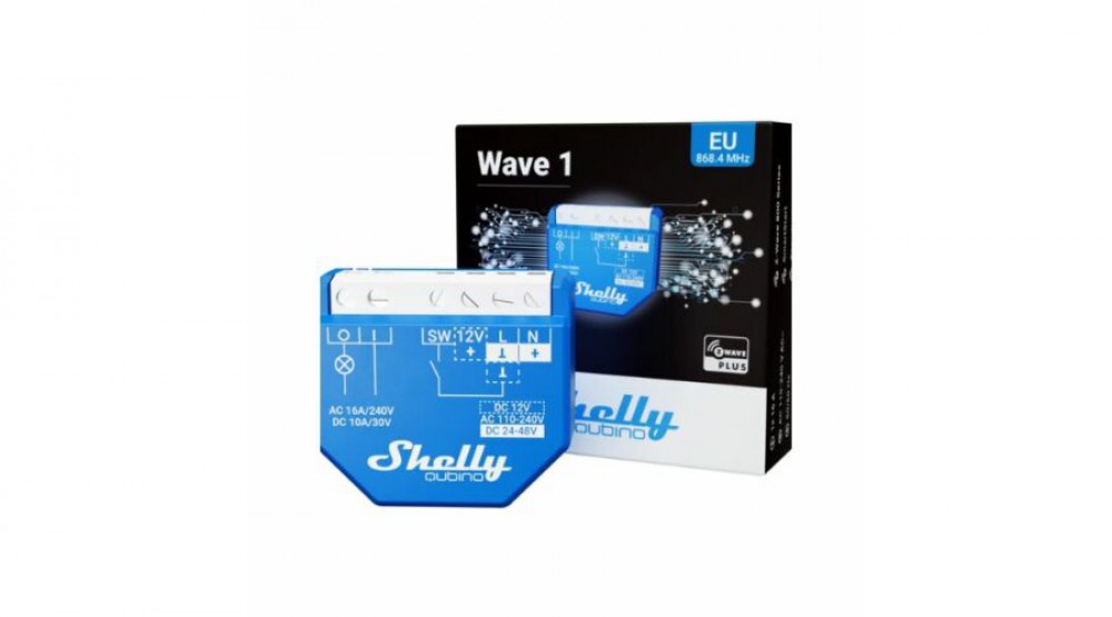 A Shelly Qubino Wave 1 okosrelé modul, a Shelly Wave termékcsalád tagja, amely Z-Wave protokollt használ a kommunikációhoz (Europában 868,42 MHz). Mivel a Z-Wave egy okosotthon protokoll, ezért kifejezetten okos eszközök közötti kommunikációra fejlesztették. A subgigaherces frekvenciának köszönhetően megfelelő a jelterjedés, a Z-Wave MESH hálózati topológiának hála pedig a központi egységtől távolabb eső eszközök is megfelelően képesek komunikálni (folyamatos megtáplálás alatti eszközök jeltovábbítóként működnek). A Z-Wave-es eszközöknek mindenképp szükségük van a működéshez egy Z-Wave Hub-ra, vagy USB koordinárorra (ami például egy miniPC-hez kapcsolódik). A Z-Wave protokoll egységesített kommunikációs parancsosztályokat alkalmaz (Command Class), így akár több száz eltérő márka több ezer terméke kompatibilis egymással, egy Z-Wave rendszer eszközei képesek egy hálózatot alkotva együtt működni. Egy Z-Wawe hálózat max. 232 eszközt tartalmazhat. További előnye a Z-Wave protokollnak, hogy támogatja az asszociációs csoportokat is (Association Groups) amelynek köszönhetően a hálózatot alkotó egyes ezközök között közvetlen összerendeléseket is létrehozhatunk. További előnye a Z-Wave eszközöknek, hogy protokoll szinten számos paraméter beállítható rajtuk, így azokat személyre szabva a lehető legszofisztikáltabb igényeknek is képesek megfelelni.