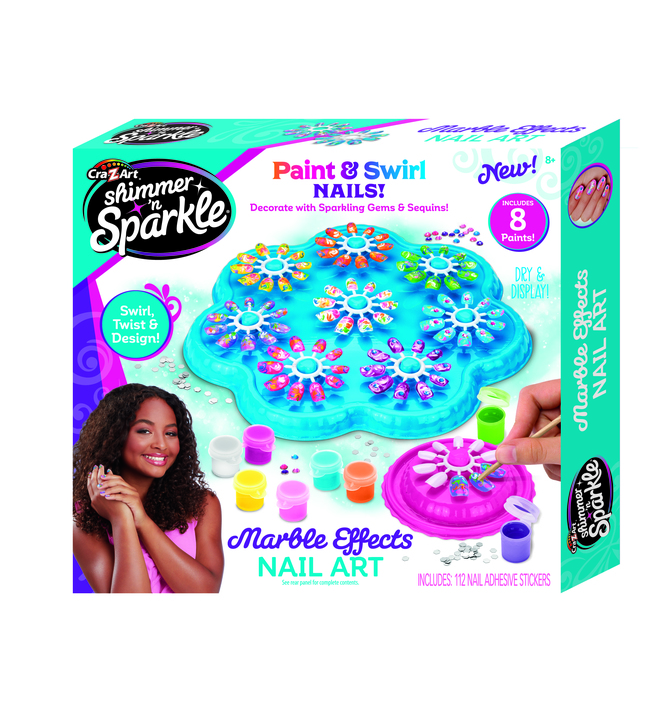 A Shimmer and Sparkle: Márványos körmök manikűr szettel bármelyik kislánynak meseszép, színpompás körmei lehetnek! Stílusos márványos körmök szivárvány színekben, feldobva ékkövekkel és flitterekkel! A pálcika segítségével könnyedén elkészíthető a minta a körmökön, a könnyebb használatért a lakkok tégelyekben kaptak helyet.
