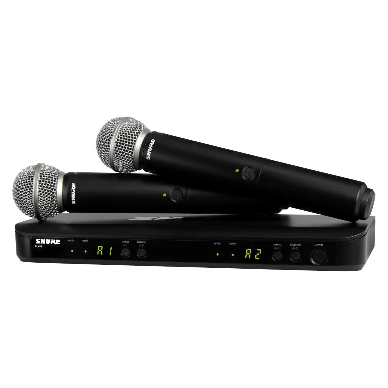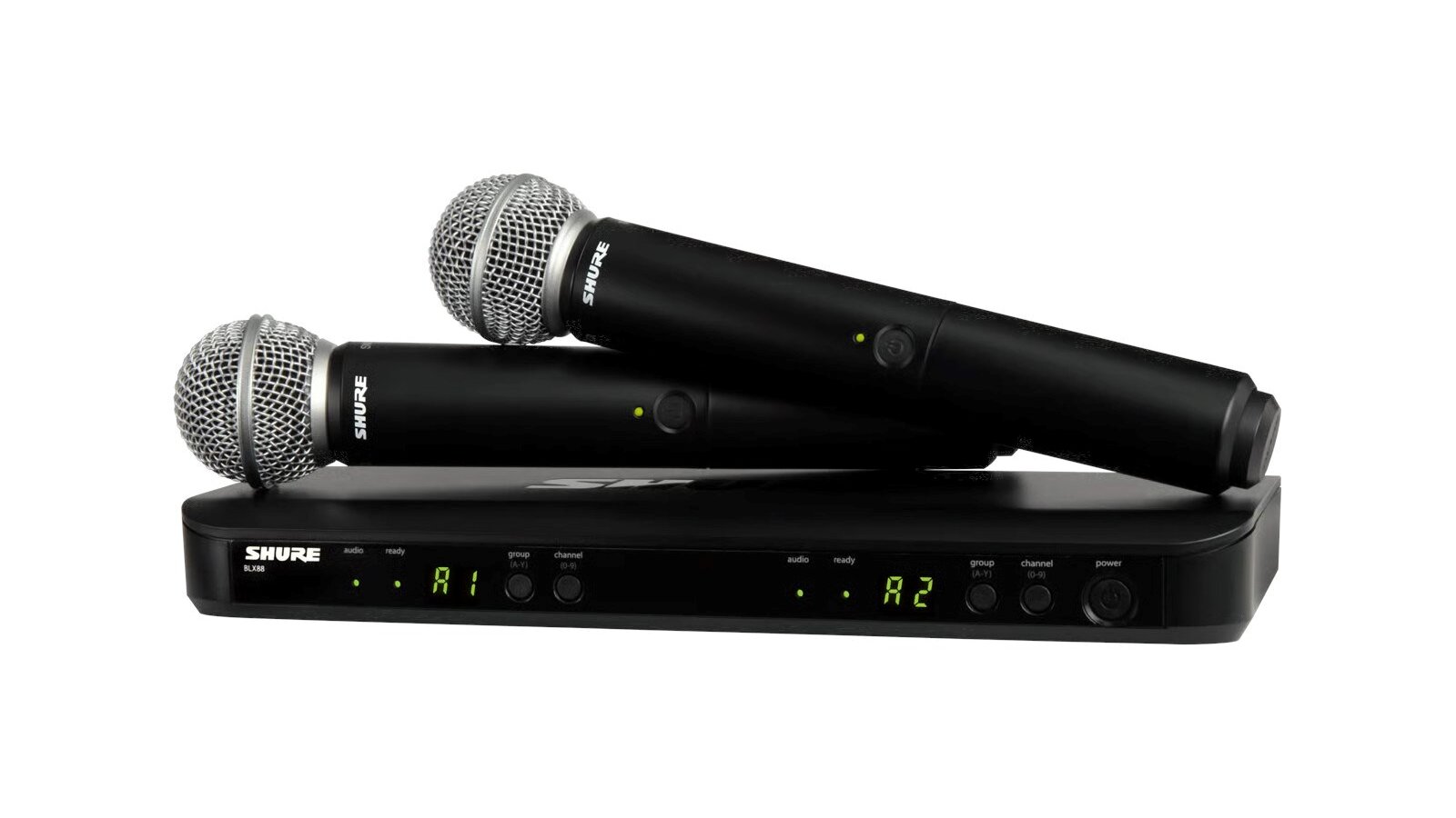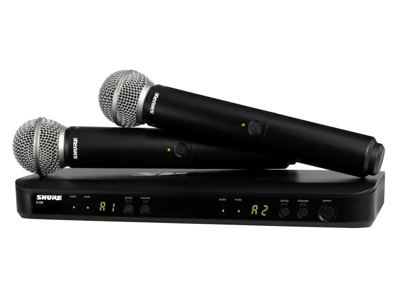 • 2 × Shure BLX2/SM58 kézi adó (SM58 kapszulával)