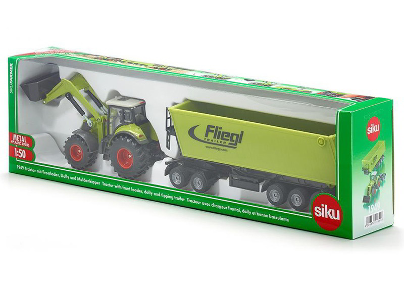 A traktor és a pótkocsi egyaránt kiváló minőségű fémből és műanyagból készült, hogy biztosítsa a hosszú élettartamot és a valósághű megjelenést. A Fliegl billenő pótkocsi lehetővé teszi a rakomány biztonságos szállítását és könnyed kirakodását, veheti fel a versenyt bármilyen valódi traktorral a munkaterületen.