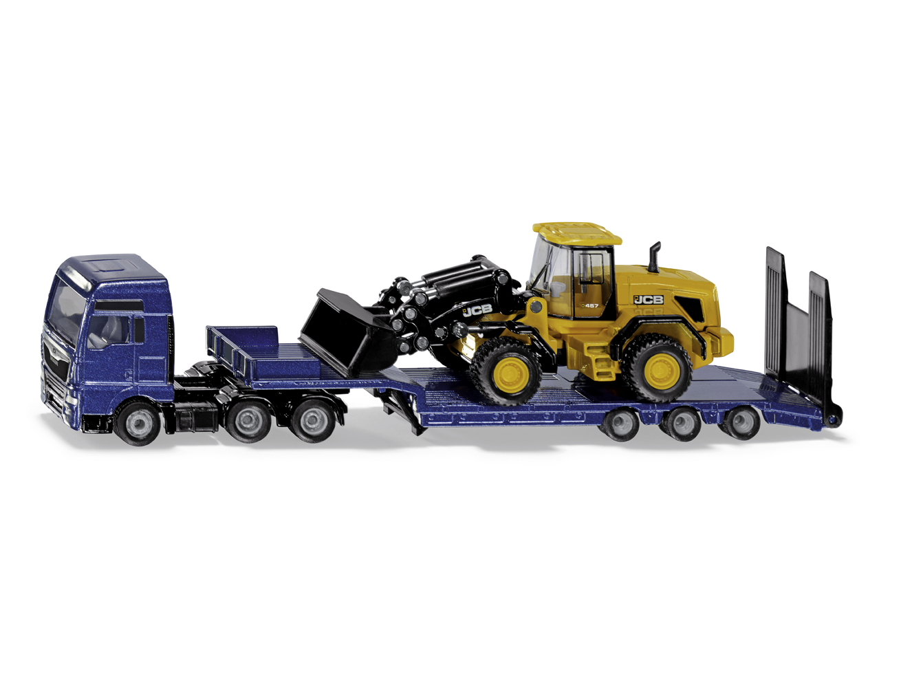 Hatalmas teherrel a következő építkezéshez, ezt képes teljesíteni a MAN teherautó alacsonypadlós szállítóval és JCB rakodóval. A háromtengelyes vontatójármű hihetetlen könnyedséggel húzza maga után a JCB rakodót a háromtengelyes alacsonypadlón a következő helyszínre. A teherautó gumikerekekkel van ellátva, melyek az úttalan utakon is stabil tapadást biztosítanak. Eljött az idő a lerakodásra: a lehajtható rámpának köszönhetően a nehéz JCB rakodó lassan visszagurulhat. A MAN TGX-ből készült fülke és az alacsonypadlós szállító mind fémből készültek, kifejezetten kemény munkakörnyezetre tervezve. A rakodókar és a hatalmas kotrólapát mozgathatók, így azonnal munkába is állhatnak lerakodás után.