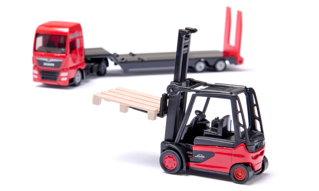 Az élénk piros színű teherautó és a Linde márkájú targonca részletgazdag kidolgozással, gondosan formázott karosszériával és arányos méretekkel kelti életre a valódi haszonjárművek világát. A Siku klasszikus, fém és minőségi műanyag kombinációjú felépítésenek köszönhetően a modell hosszú időn át bírja a mindennapos játékterhelést, akár a nappaliban, akár a gyerekszobában rója a „fuvarokat”.