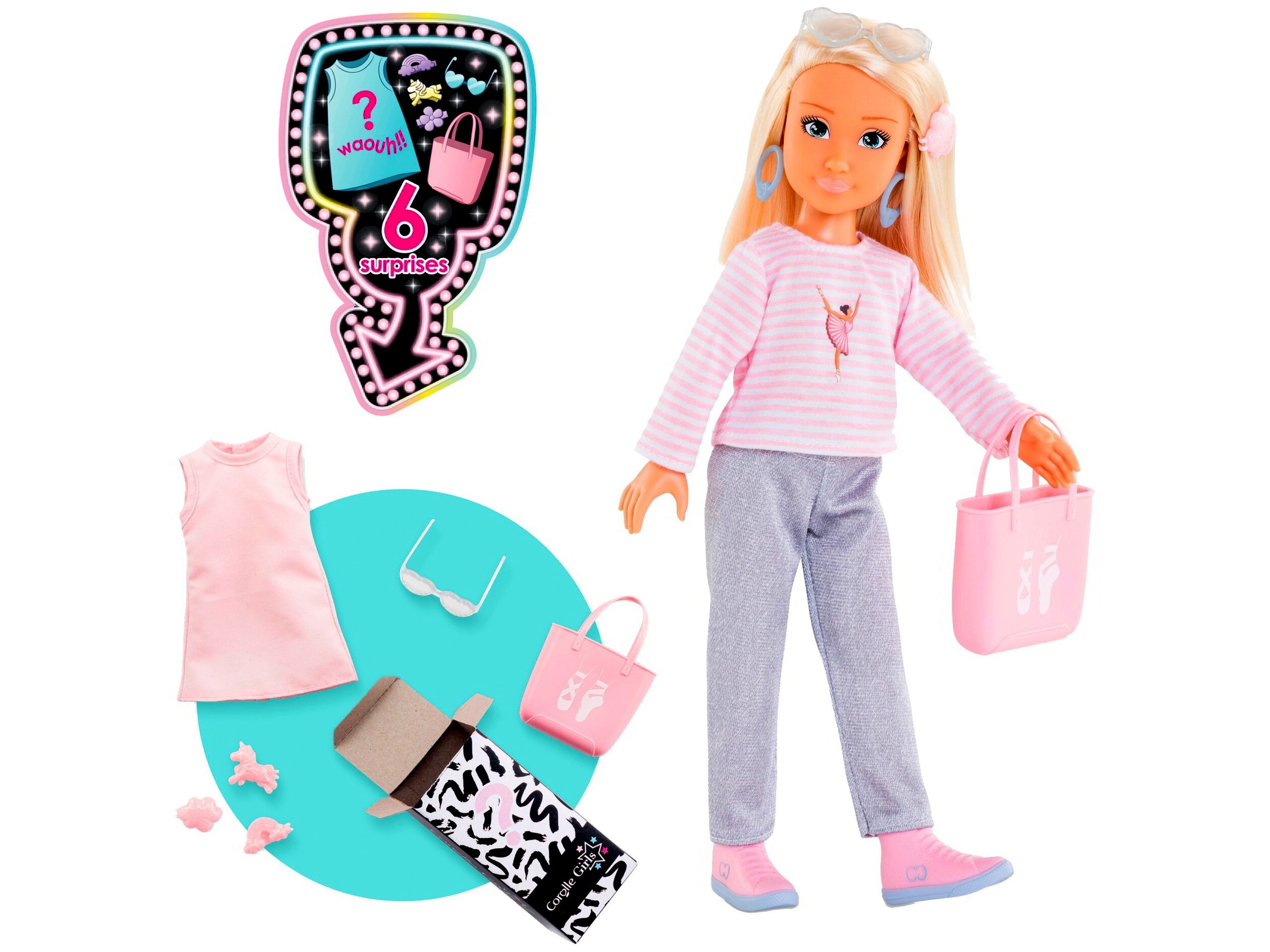 A csomagban 6 meglepetést találsz, amelyekkel megváltoztathatod az öltözéket - köztük ruhát, hajcsatokat, táskát és napszemüveget. Ez a baba, mint minden Corolle baba, kellemesen finom vanília illatú. Festett szeme van, és önállóan állhat és ülhet.