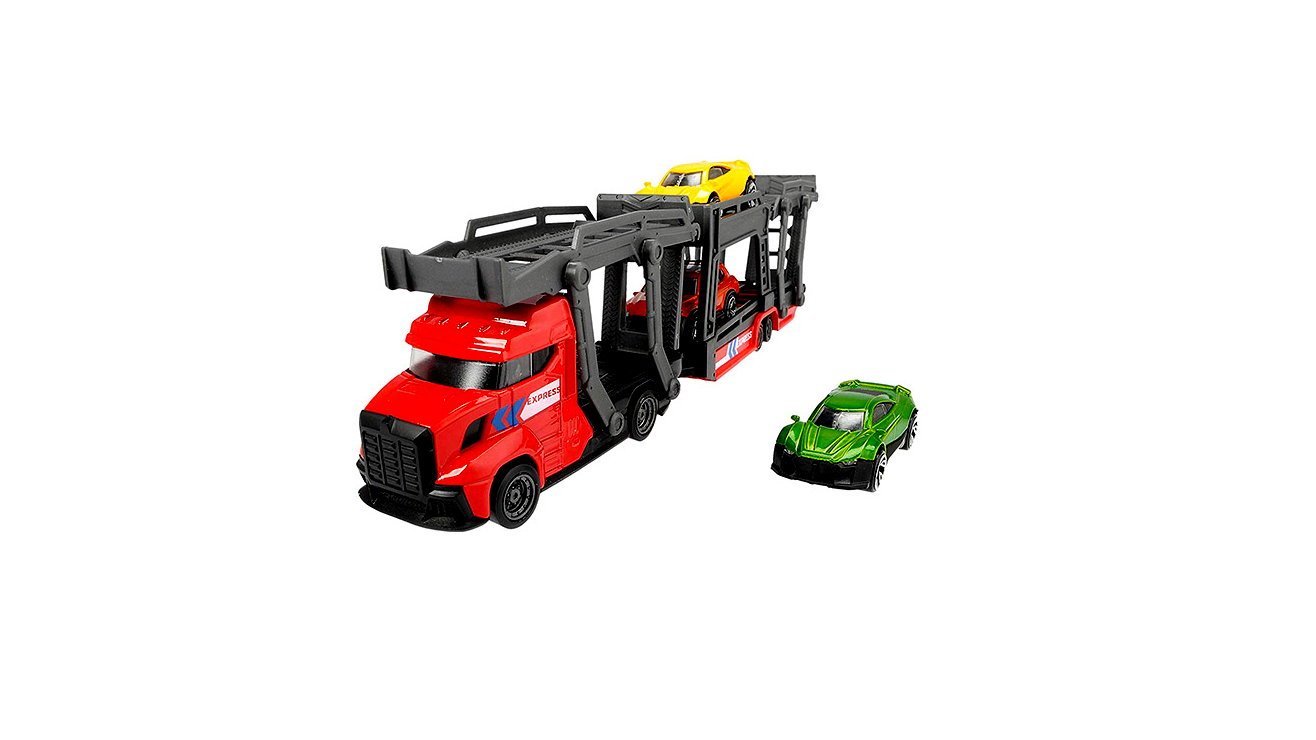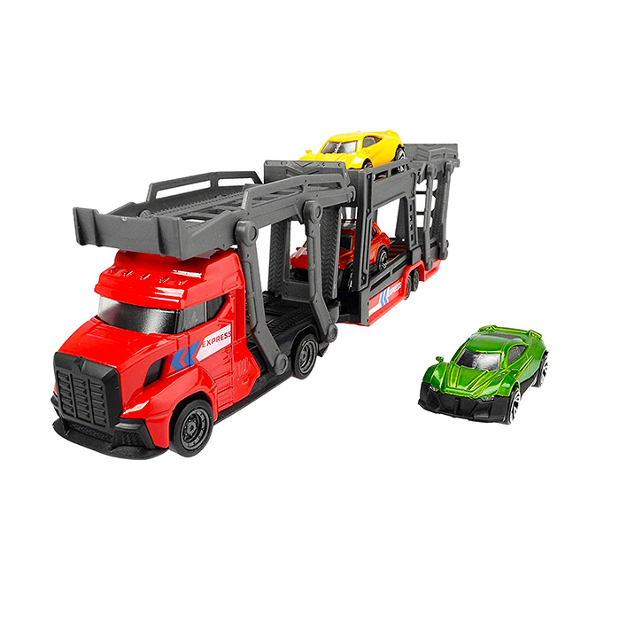 Az autószállítás nem ismer határokat a Dickie új kamionjaival. Két -féle szállító közül lehet választani, egy európai és egy csörlős típus közül. A traileren sok kisautó elfér, így garantáltan nem marad senki az út szélén. A trailerek élethűen mozgathatóak, így az autók le és fel tudnak gurulni a kamionról. A szett 3 db kisautót tartalmaz. Az ár 1 db termékre vonatkozik, amit véletlenszerű változatban szállítunk. Mérete: 28 cm.