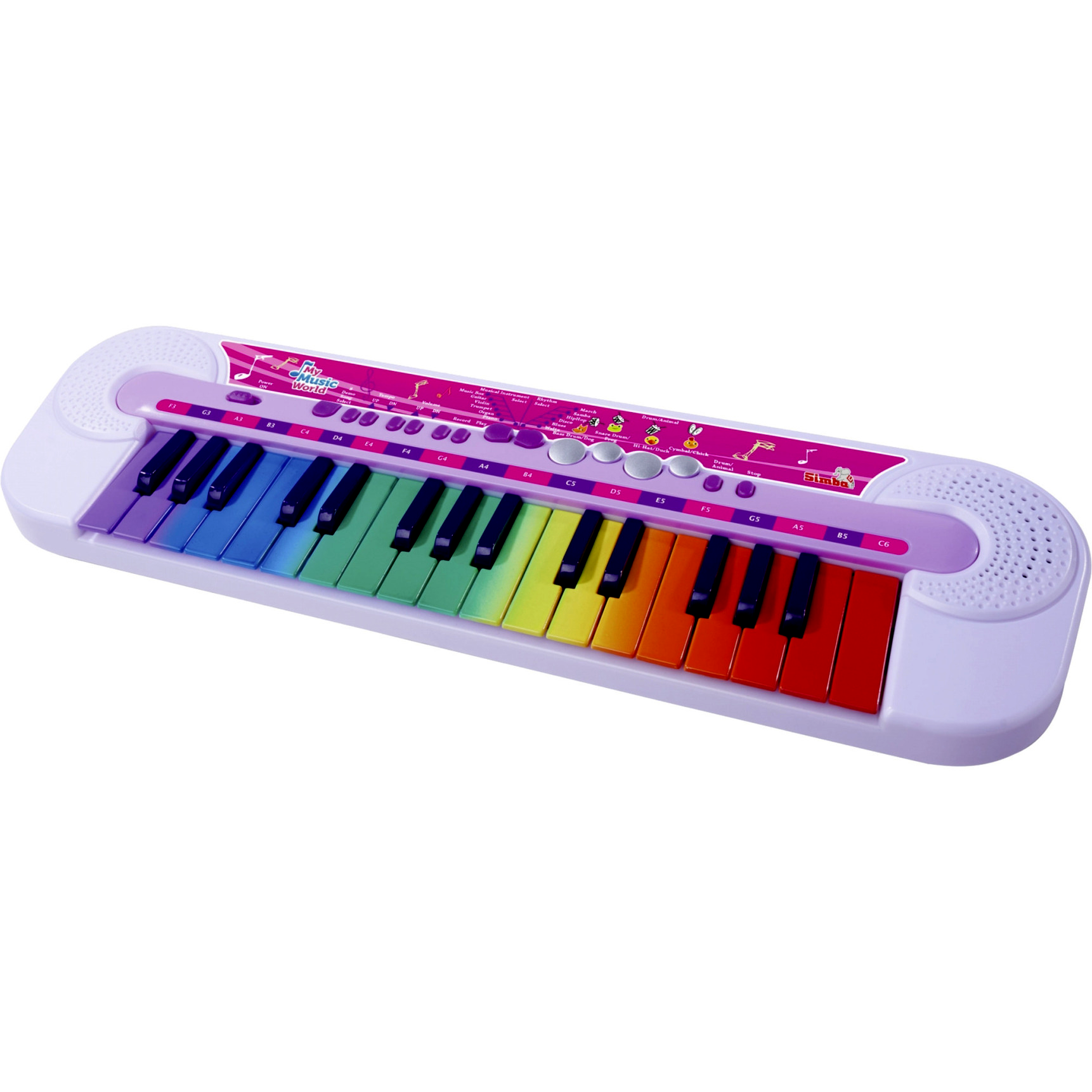 A My Music World sorozat vidám szintetizátora igazi szemet gyönyörködtető hangszer óvodás korú gyerekeknek. A 32 színes, szivárvány árnyalataiban pompázó billentyű nemcsak különleges megjelenést ad, hanem játékosan segíti a hangok és a billentyűk megjegyzését is. A hangszer funkciói támogatják a zenei érdeklődés kibontakozását, a ritmusérzék fejlődését, valamint a kéz–szem koordináció gyakorlását.