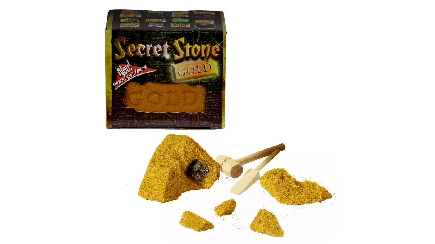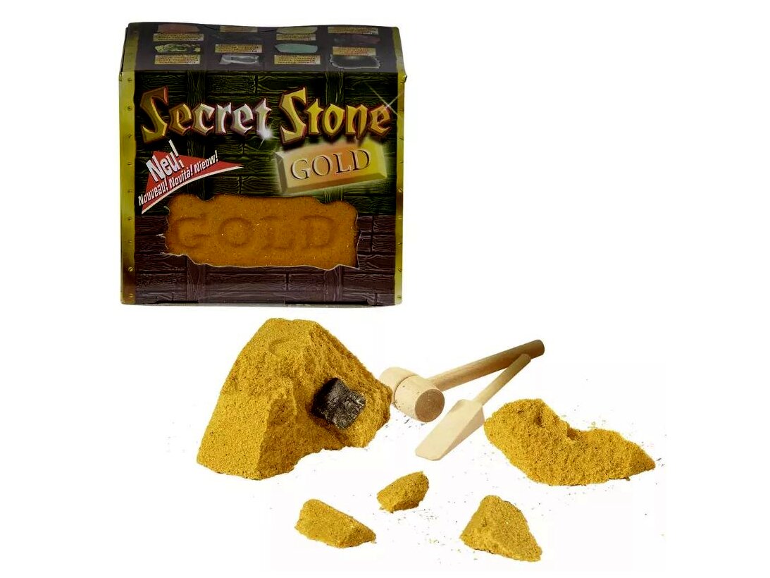 - Homokrúd: A 8 x 4,5 x 3 cm méretű arany színű homokrúd belsejében egy meglepetés ásvány rejtőzik.