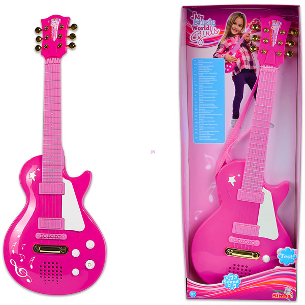 Igazi rózsaszín, csajos gitár! Gombnyomásra menő rockzenét játszik! A gitár nem hangolható! Csapj a húrok közé és légy te is igazi rocksztár! A működéséhez szükséges 2 db R6 elemeket tartalmazza! A csomagolás mérete: 58 x 5 x 5 cm.