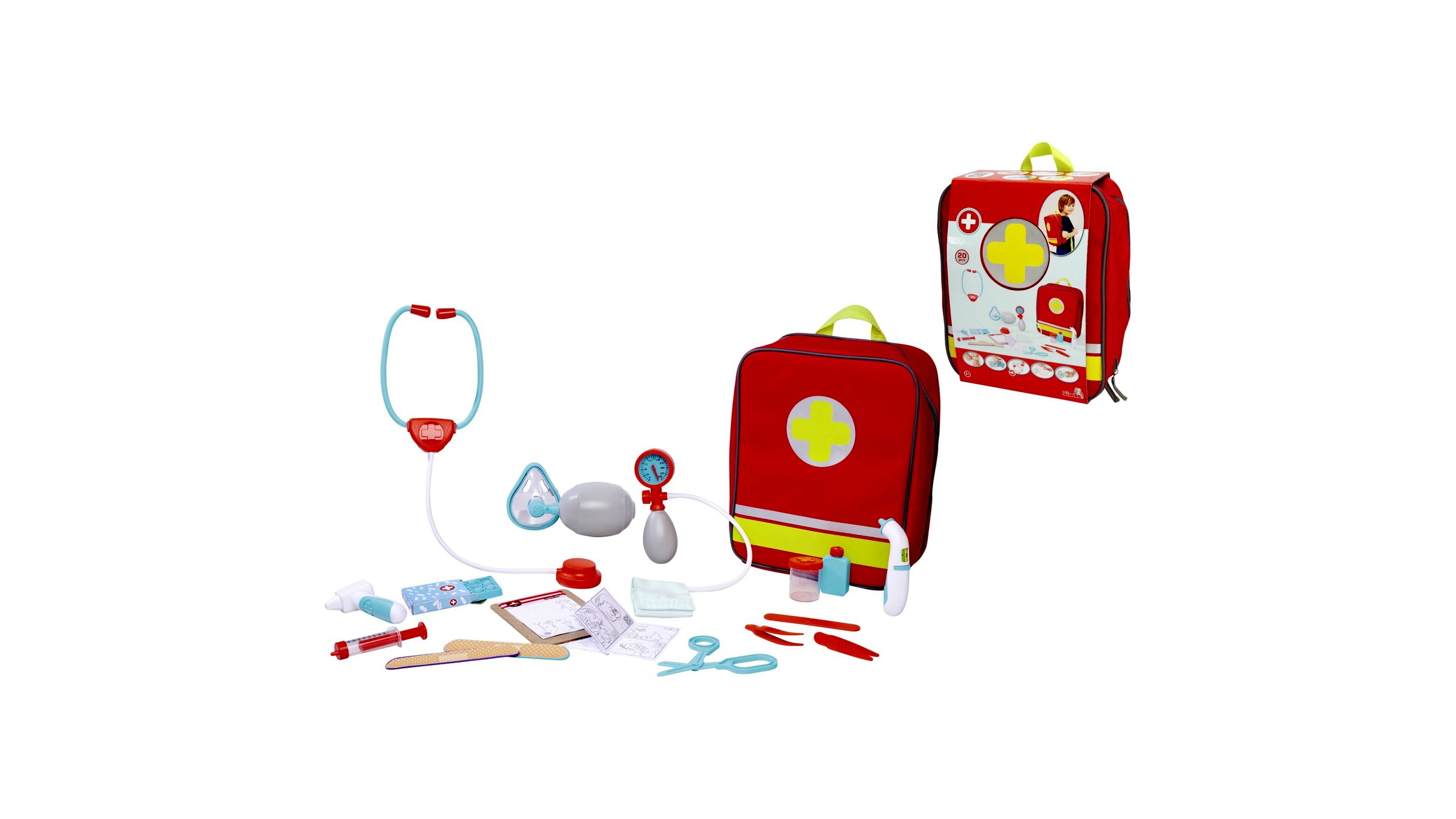 Készítsük fel a kicsiket a mentős szerepjáték izgalmaira ezzel a sokoldalú hátizsákkal, ami tartalmaz minden szükséges eszközt egy orvoshoz vagy mentőshöz! 🎒 A 24 x 30 cm-es méretű hátizsákban megtalálhatók olyan alapvető orvosi játékeszközök, mint a vérnyomásmérő, injekciós tű, olló, ragtapasz és a sztetoszkóp. A sztetoszkóp ráadásul hangfunkcióval is rendelkezik, amely szívverést játszik le. Az összes eszköz biztonságosan tárolható a hátizsákban, így bárhová magukkal vihetik a kicsik! 🩺