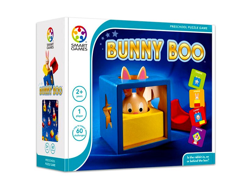 Varázsold ki a nyulat a dobozból! A Bunny Boo egy varázslatos 3D építkezős készségfejlesztő, négy nagy strapabíró építőelemmel. Vajon a nyúl átnéz a kerek nyíláson, vagy a csillagablakon néz les ki? A sárga, a piros vagy a kék építőelem tetejére ugrált fel? Néhány hasonlónak néz ki, de a megoldása teljesen eltérhet - függően attól, hogy a nyúl füle meddig ér el! A Bunny Boo-val a gyerekek játszva fedezhetik fel a 3D építkezés csodálatos világát. A 60 feladvány segítségével könnyedén sajátíthatják el a tárgyak egymásra, egymásba vagy egymás elé helyezését, felismerve a takarás-fedés gondolatát. A csomagolás kinézete eltérhet a képen láthatótól!