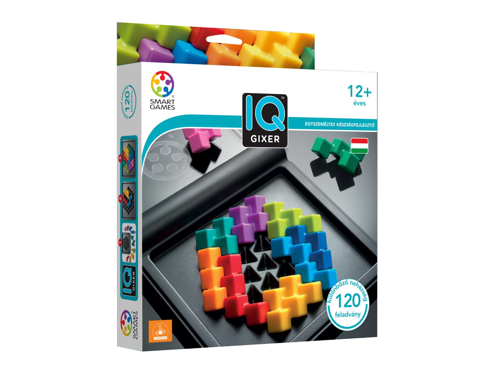 Mit szólnál egy valódi kihíváshoz? Oldd meg a feladványokat a játéktér feltöltésével, de vigyázz… nem minden elem illeszkedik úgy, ahogy elsőre gondolnád! Az IQ-Gixer praktikus utazódobozában 120 feladvány rejlik. Ha készen állsz, akkor rajtad a sor!