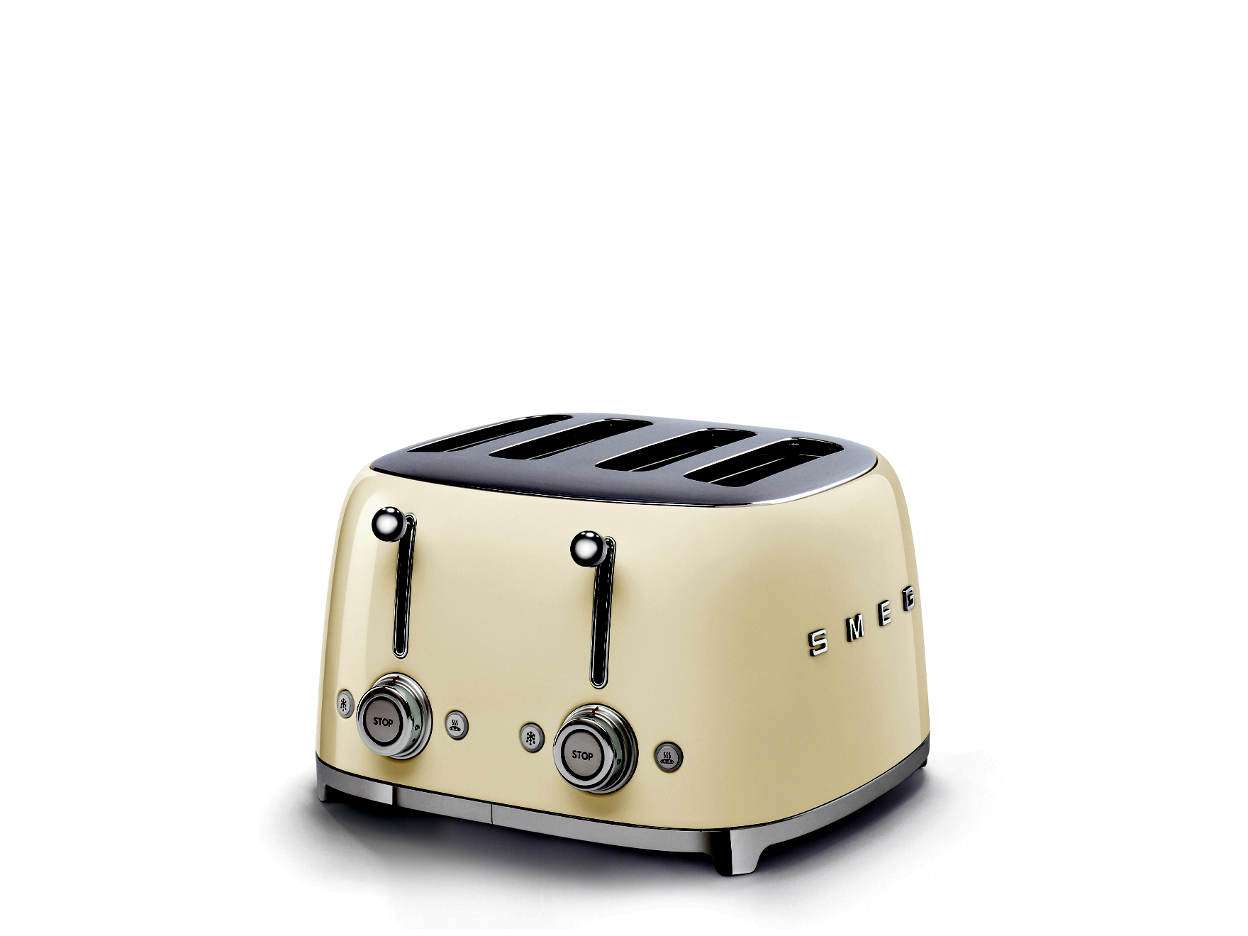 Dobja fel a reggeleket ezzel a SMEG 50-es évek retro stílust megidéző 4 szeletes kenyérpirítóval! A SMEG TSF03CREU nem csak a modern funkcionalitást kínálja, de egyben a konyhája dísze is lesz elegáns, polírozott króm és bézs színeivel.