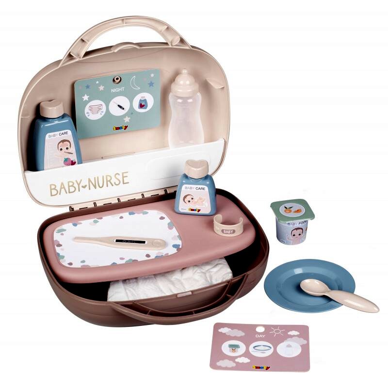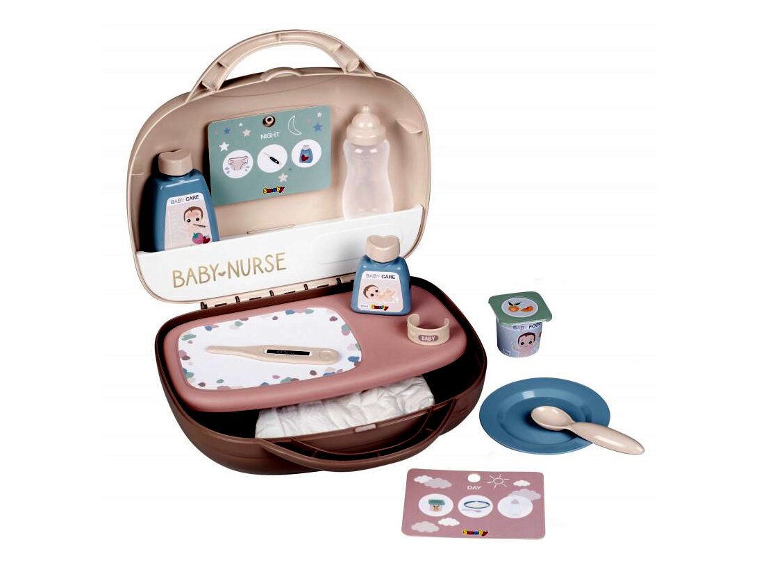 A gyerekek nagyon szívesen foglalkoznak a kedvenc babájukkal, a Baby Nurse babaápolási játékszettben pedig minden megtalálható ehhez. A stílusos, pasztell színű dobozban praktikusan elfér minden eszköz, és minden adott egy vidám játékhoz. A gyerekek például megetethetik, tisztába tehetik és meg is gyógyíthatják a kedvenc babájukat.
