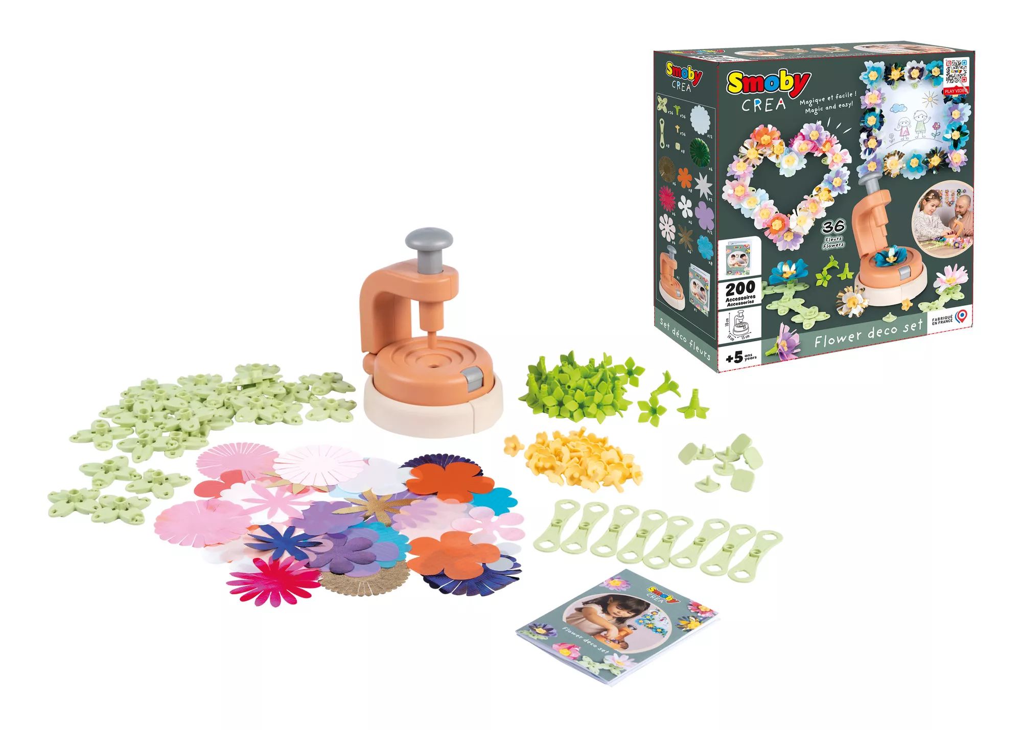 A Smoby Crea 200 darabos Virágkészítő szett segítségével csodálatos szövetvirágokat készíthet, amelyek tökéletes dekorációs elemek lehetnek az otthonában, vagy akár egyedi ajándékként is megajándékozhatja szeretteit. Ezzel a készlettel a kreatív kézműveskedés sosem volt ilyen egyszerű és szórakoztató!
